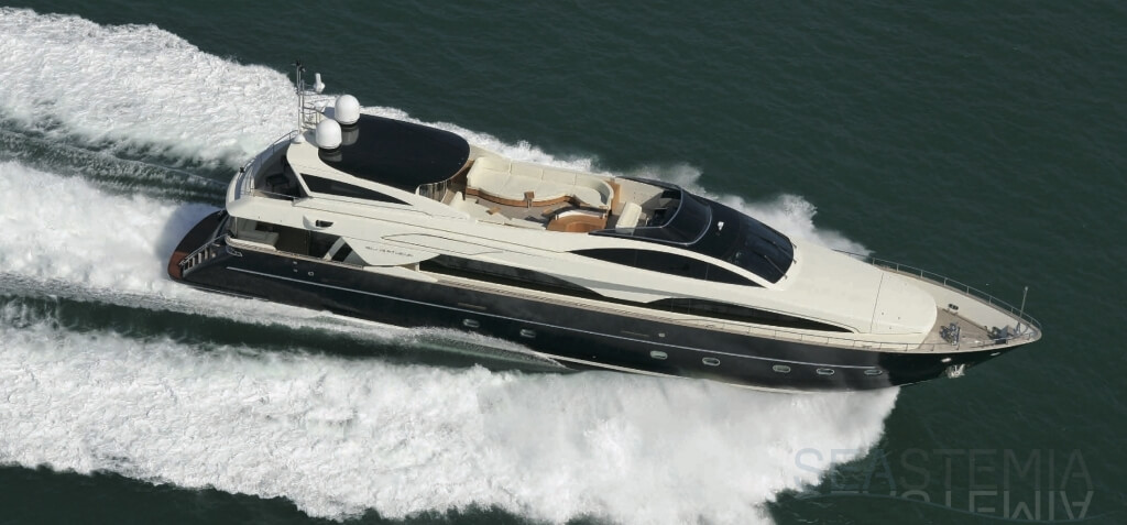 This Riva Athena built in 2008 by Riva in the Italian Riva shipyard of La Spezzia is a perfect example of model Athena 115. She is immaculately maintained by the Owner and her permanent onboard working crew.