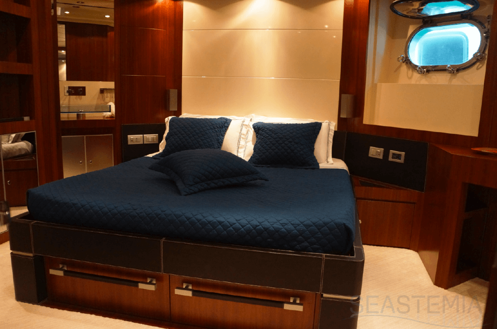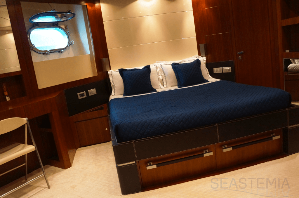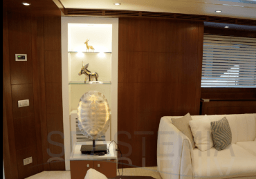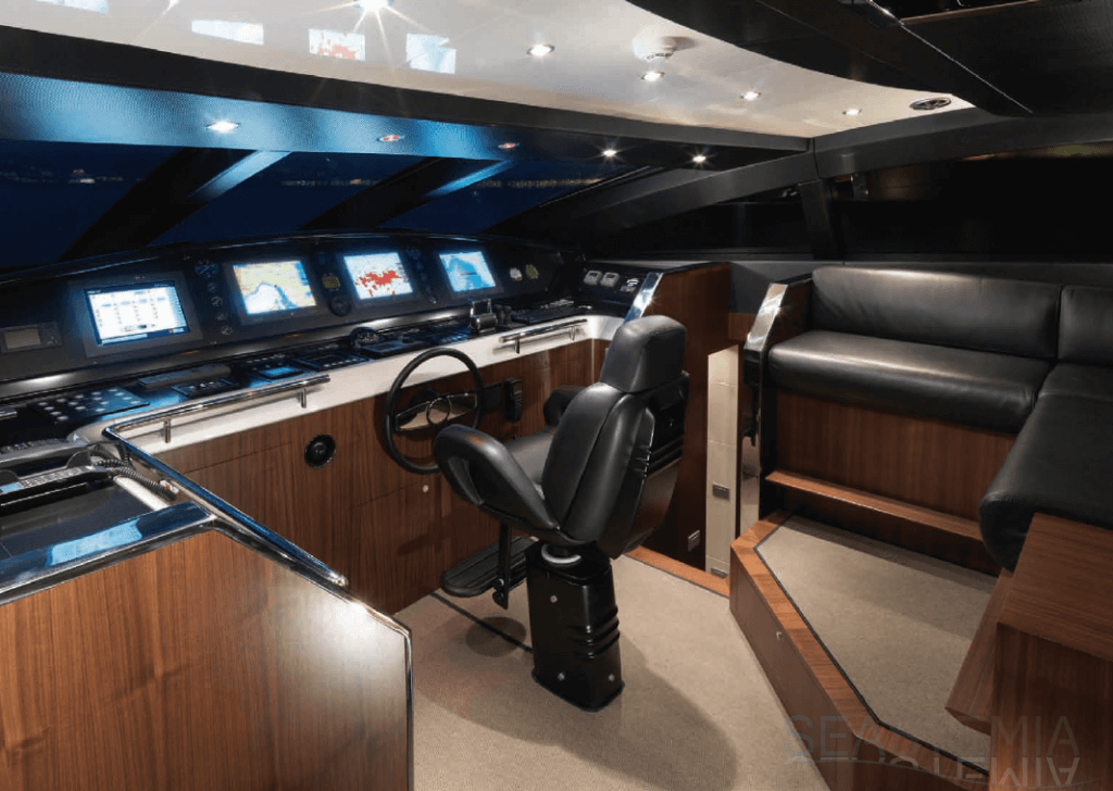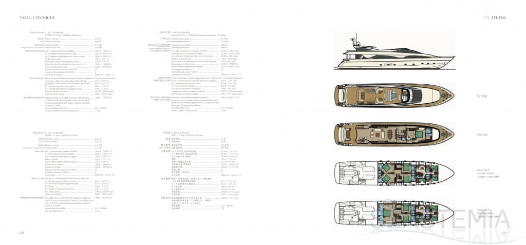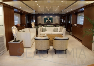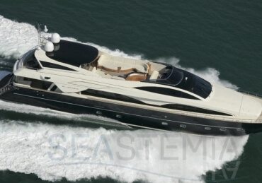 This Riva flybridge yacht is a Masterpiece of 35.40 meters overall, with a raised pilot house, a large Mastercabin on the main deck, four comfortable guest cabins in the lower deck as well as semi closed on the aft/open flybridge, a unique feature by Athena model.