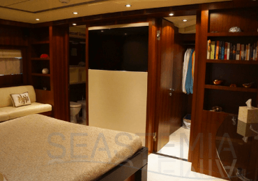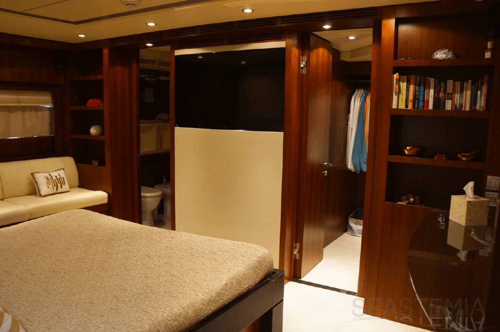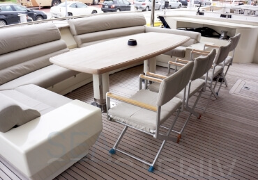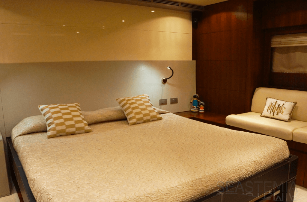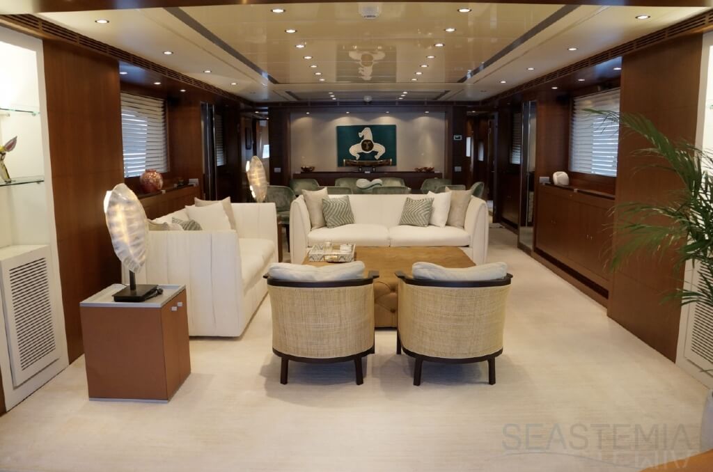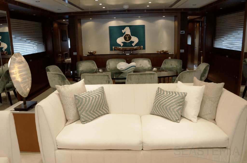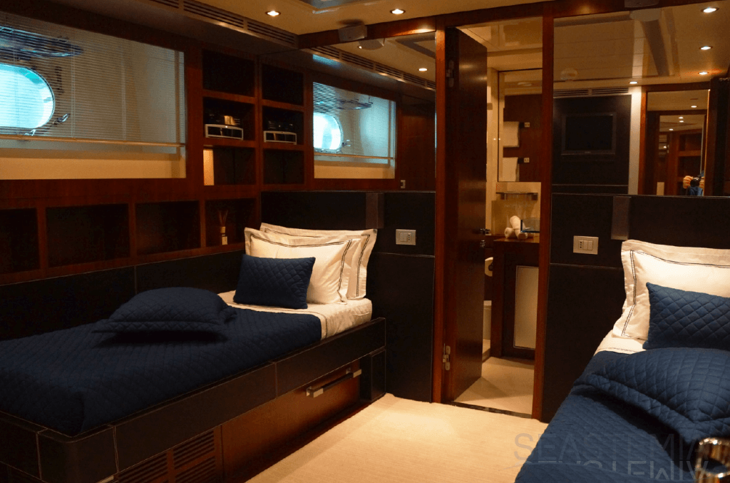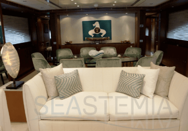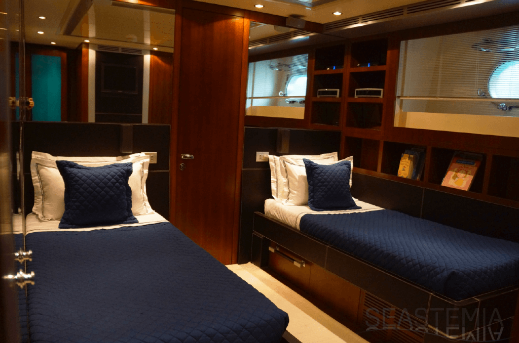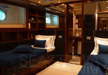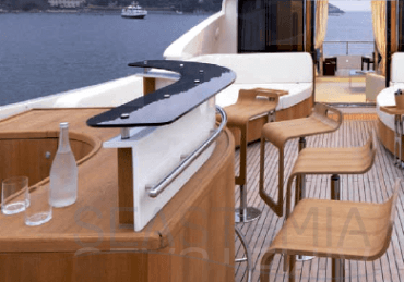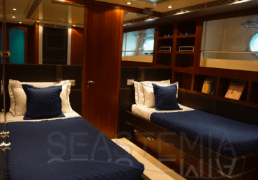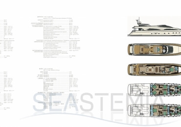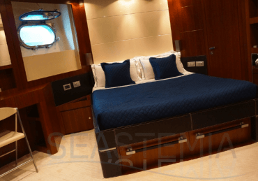Her combined sporty and elegant design associated with her stylish interior offer accommodation for 10 guests in 5 spacious and luxurious staterooms.
