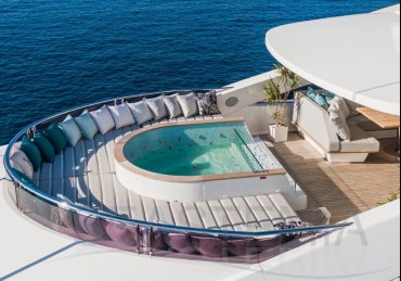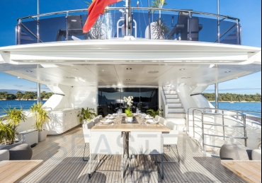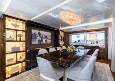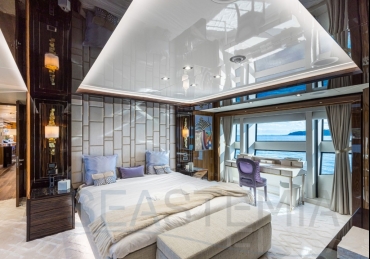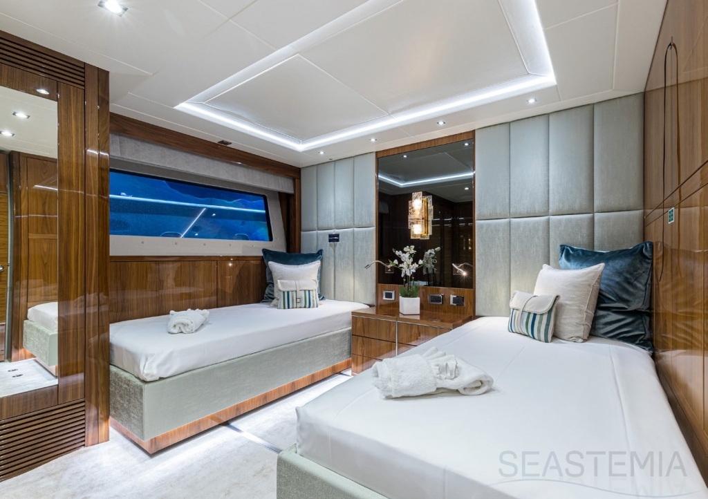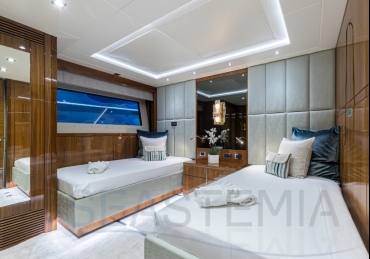 This tri-deck Superyacht accommodates up to 12 guests in six cabins comprising a VIP on the upper deck, a master suite on the main deck and two double and two twin cabins on the lower deck. The twin cabins each have a Pullman berth and all the cabins on this yacht have marble en suite bathroom facilities.