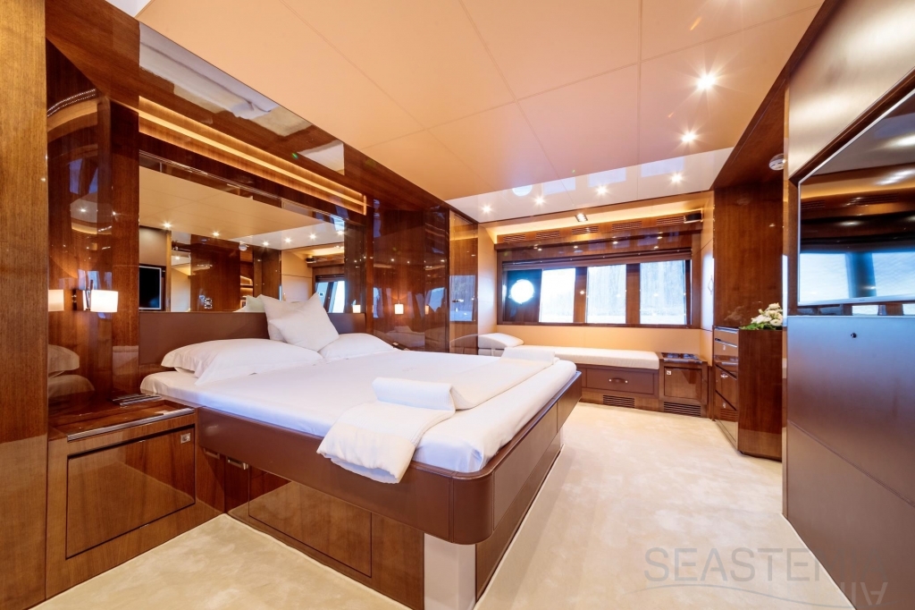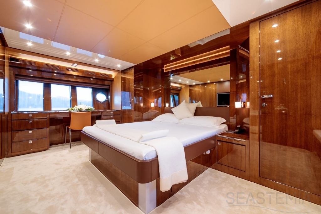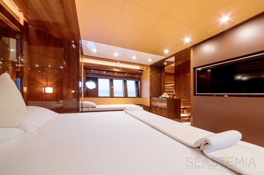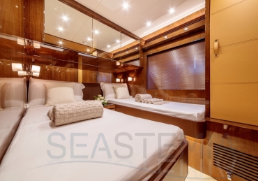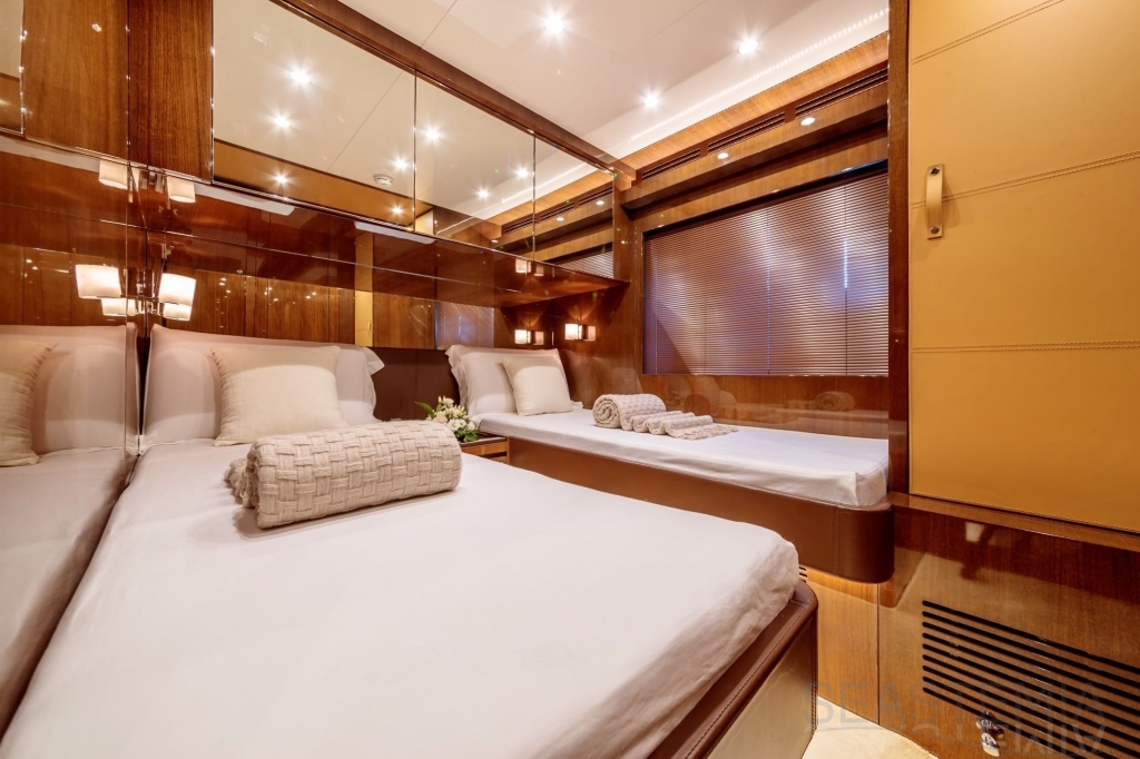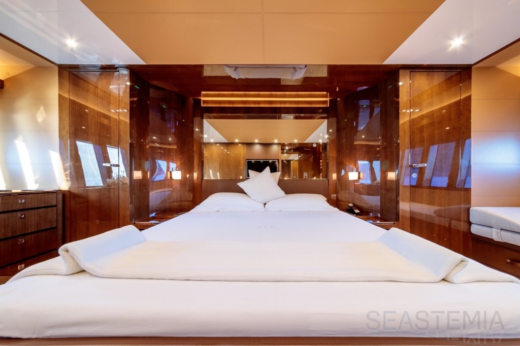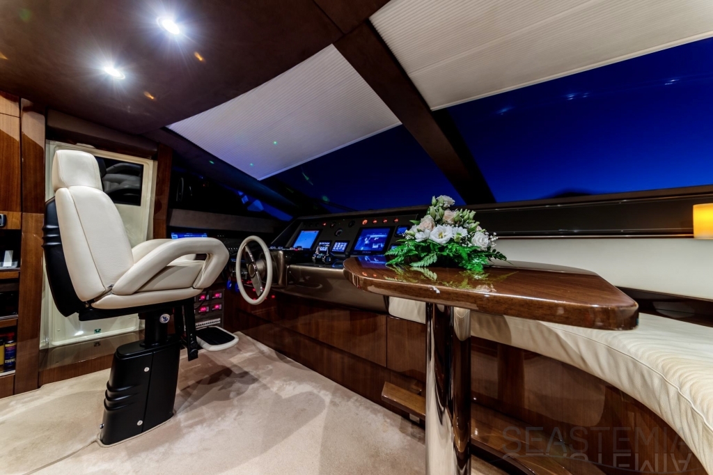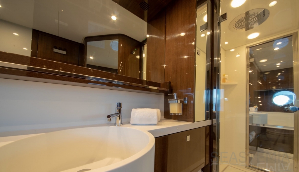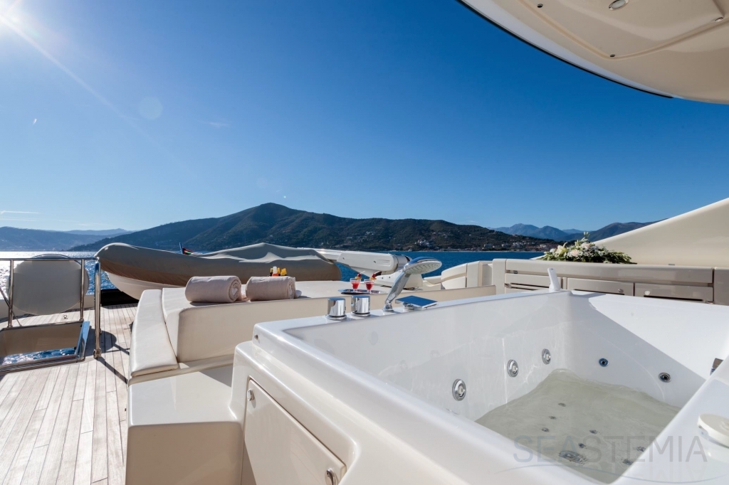 With unmatched RIVA design and presented in immaculate condition, this stunning 4 cabins Duchessa 92’ built in 2015 represents today a rare opportunity to acquire a renowned vessel with only 370 engines hours maintained on a daily basis to the highest standards by its professional full-time crew. Fast and comfortable, guests won’t get any unpleasant motion related feeling as she is equipped with 2x Gyro Seakeeper stabilizers. Exceptional features like the jacuzzi SPA tub on the vast flybridge, Tropical A/C and all entertainment systems have been upgraded as well as the full interior wood panel which give a more luxurious touch compared to the original. Viewings in Dubai of the best and latest Duchessa 92’ on the market are highly recommended.