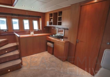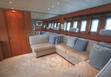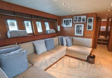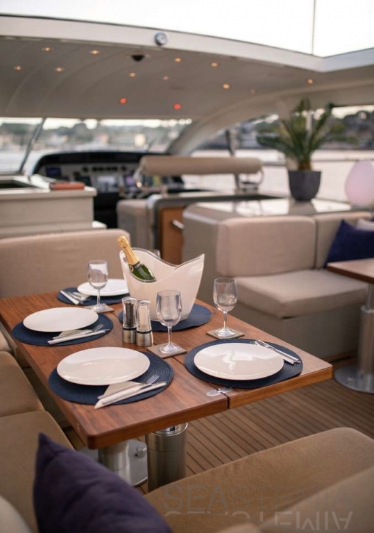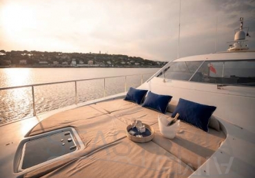 Exclusive motoryacht “ELLERY A” with a modern design and comfortable interior is ready to give an amazing experience during the cruise. Stepping aboard this 24 meter’ luxurious yacht, you will appreciate the spacious aft deck with a large sun-pad.