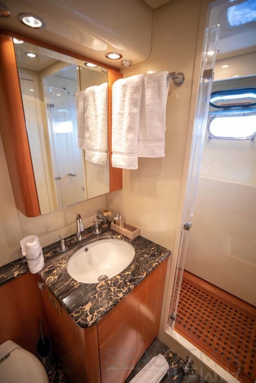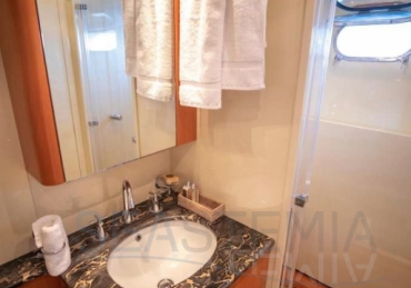Luxurious “ELLERY A” can accommodate up to 6 guests in 3 spacious cabins with en-suite facilities. The master and the VIP cabins are equipped with double beds, and the guest’s cabin offers 2 single beds.