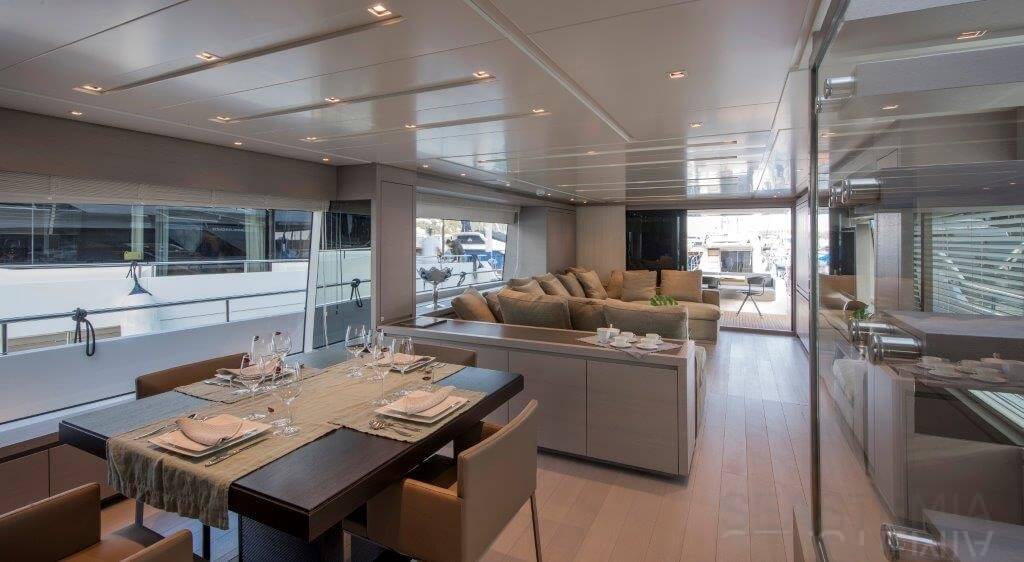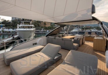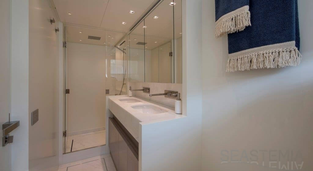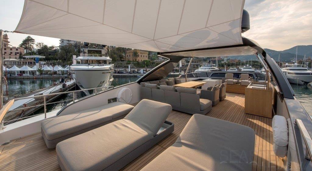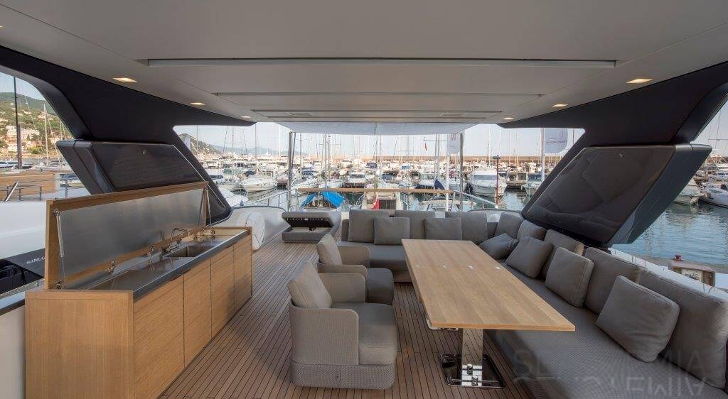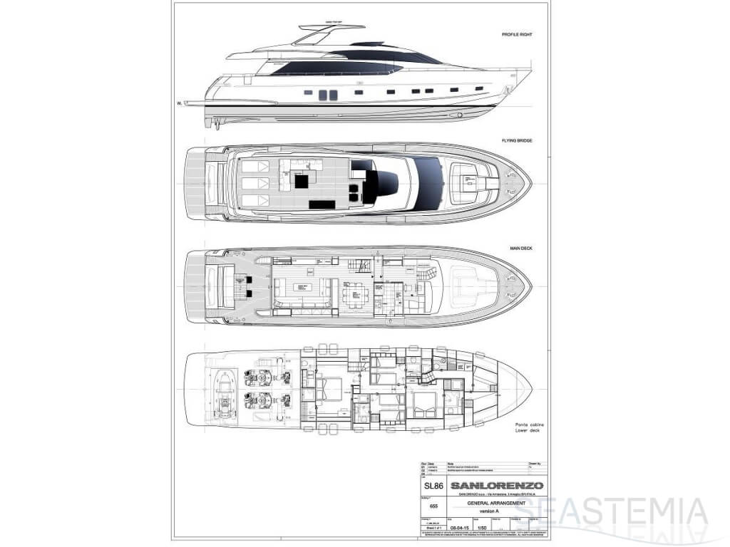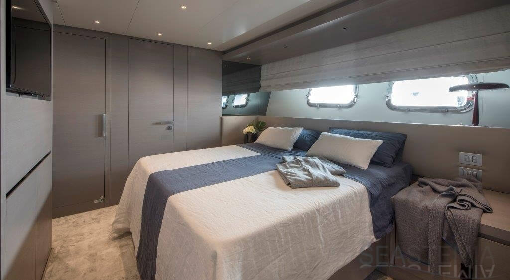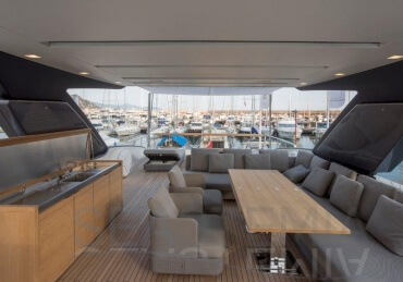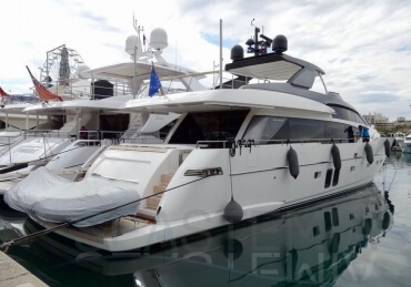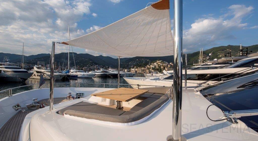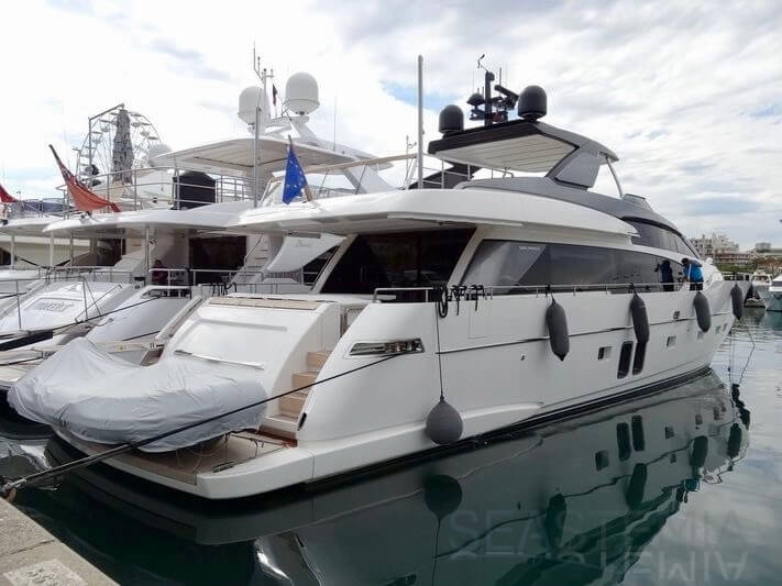 The 26.76m SL86 yacht was built in 2016 by SanLorenzo. She features a contemporary soft exterior and Interior design by Mauro Micheli . Barely and solely used by her single and first owner since her launch, her low hours MTU engines cruise at 26.0 kn and reache a top speed of 32.0 kn.