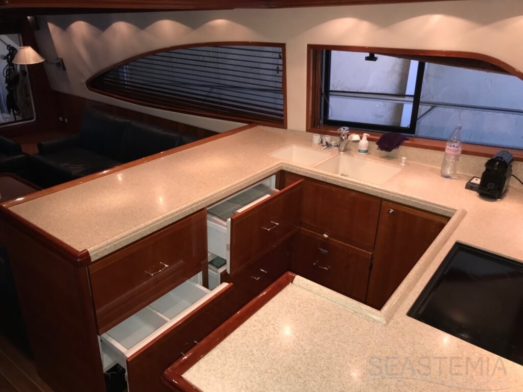 This exemple of 63 Convertible is one of the few, perfectly maintained ones, kept in its best original conditions from its second owner who took close attention on her since now 13 years. The yacht was used solely privately with a permanent captain onboard, and kept in winterization in dry docks every seasons.
