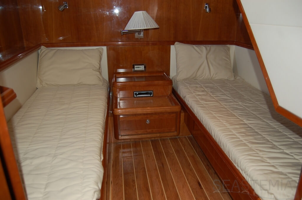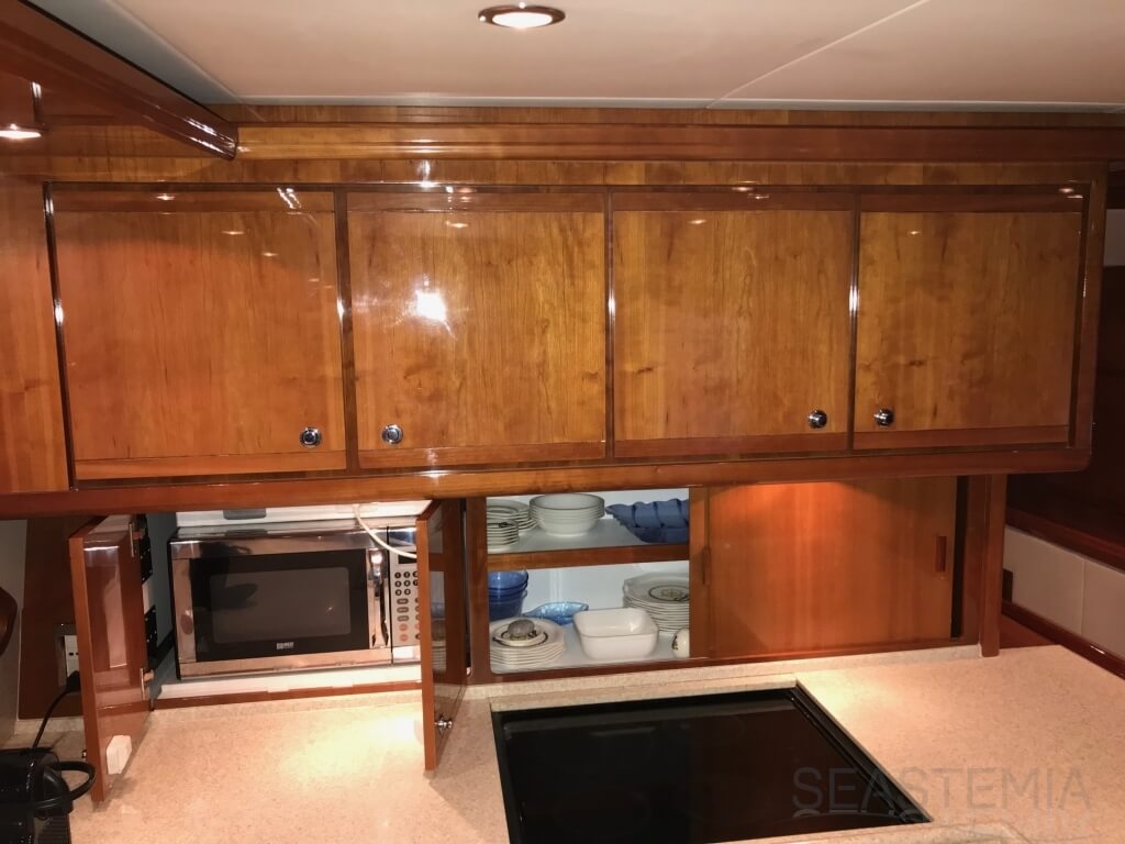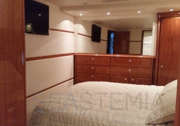 Apart from the stabs, her specification is full and in the best 4 cabins layout, her volumes are gorgeous and comparable in many aspect in much larger actual yachts. All of her systems are running properly with many recent important changes, like fire protection system, batteries... She got several upgrade in the time, notably with an hydraulic platfom added on the stern, the general overall condition is excellent and she is ready to serve again the next owner for years ahead for its best satisfaction!