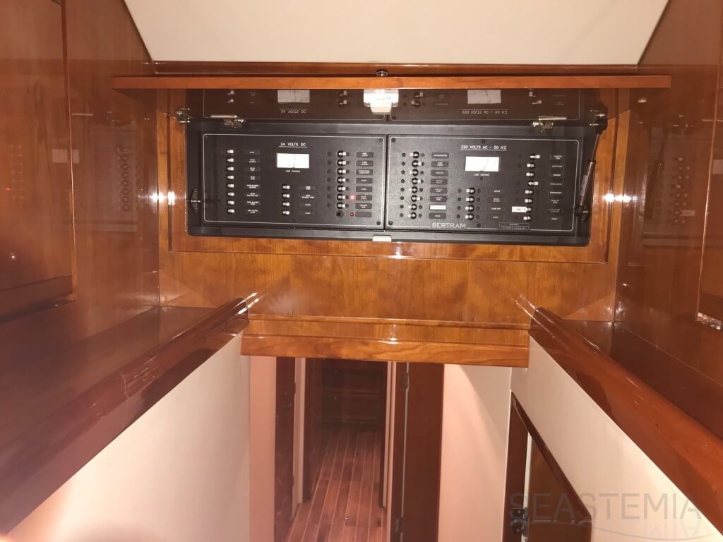 Welcome in front of a brilliant illustration of the "state of the art" navigation demonstrator back in Ferretti history. The Bertram was and remains from all time highly respected for those "experienced yachtess" and owners, a reference in terms of sea going capabilities, "seaworst" strong and durable design, and practibility; one of the best Deep V-Hulls built and designed for the demanding fishing needs of the Atlantic ocean to confront itself with other US competitors in the segment; in other word it is one of the reference in terms of safety at sea !