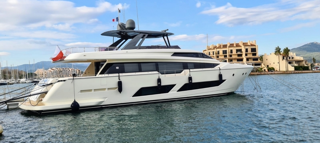 Here is a new comer on the market, the Best Ferretti 4 cabins flybridge: A Ferretti FY850, launched in 2018 model line 2019 with a full specification of options, in a perfect condition by its first owner. The maintenance is up to date, permanent crew onboard and well priced.