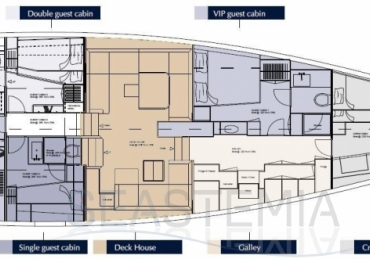 | Sleeps | 8 guests | Berths | 4 simple, 2 double |