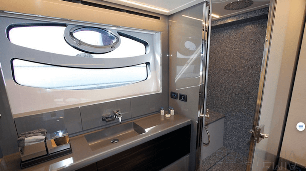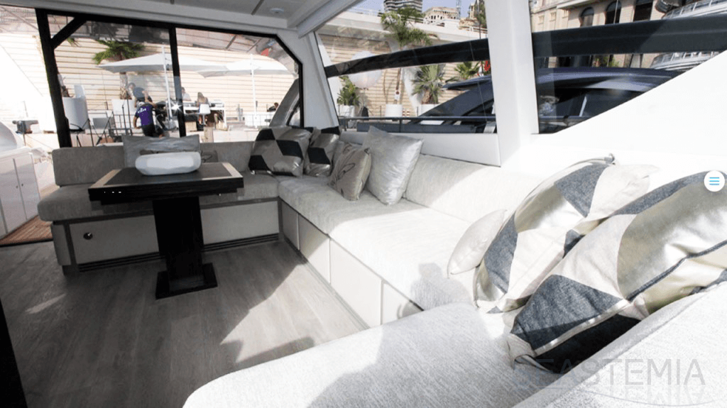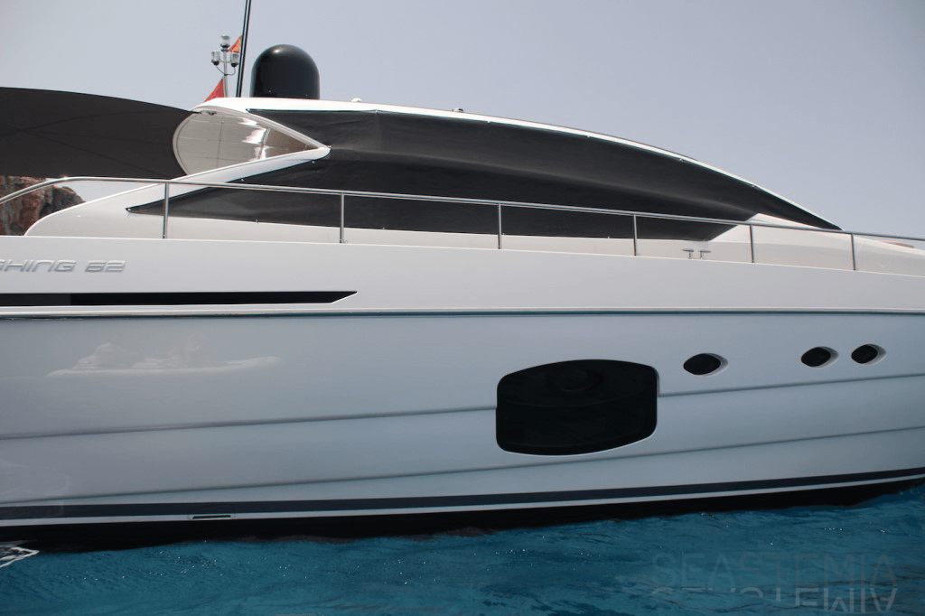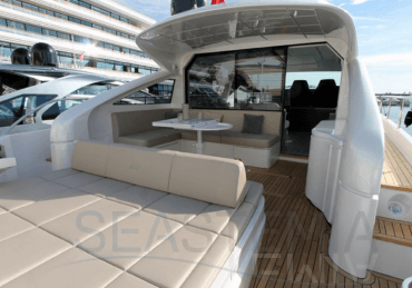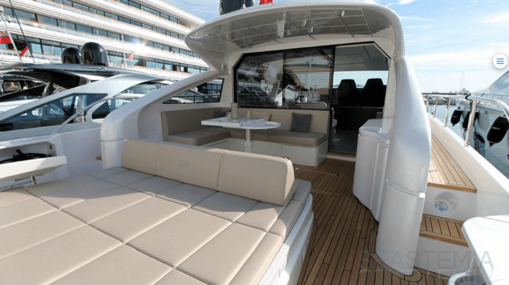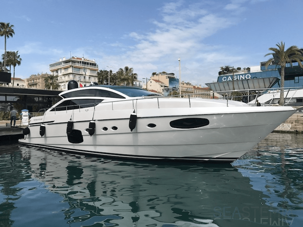 PERSHING 62 in Pearl White Metallic with Seakeeper Gyro Stabilizer and 2 x 1.550 HP MAN V12 engines. Delivered 2018. Only 180 hours ! Private Boat - No Charter.