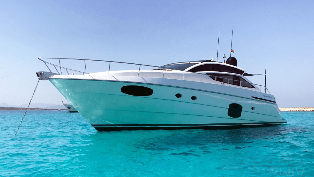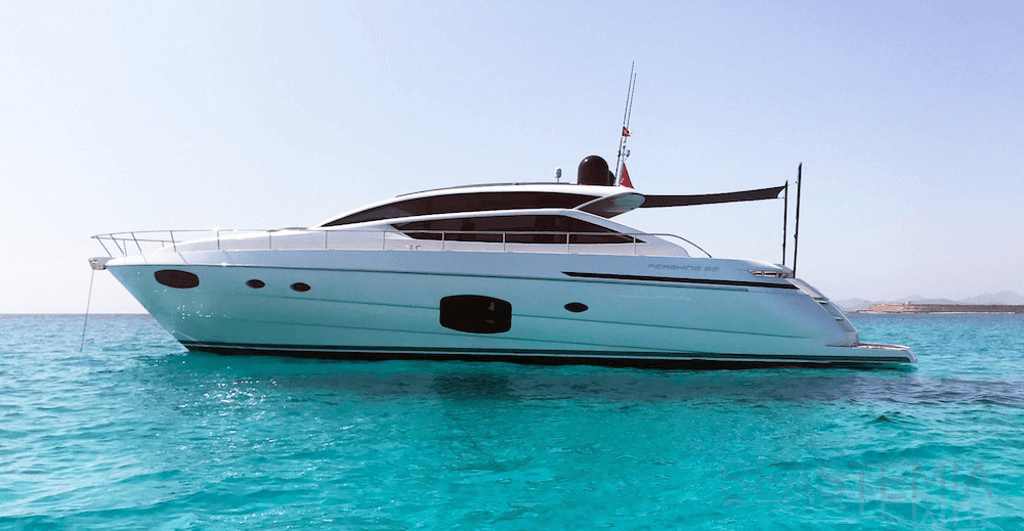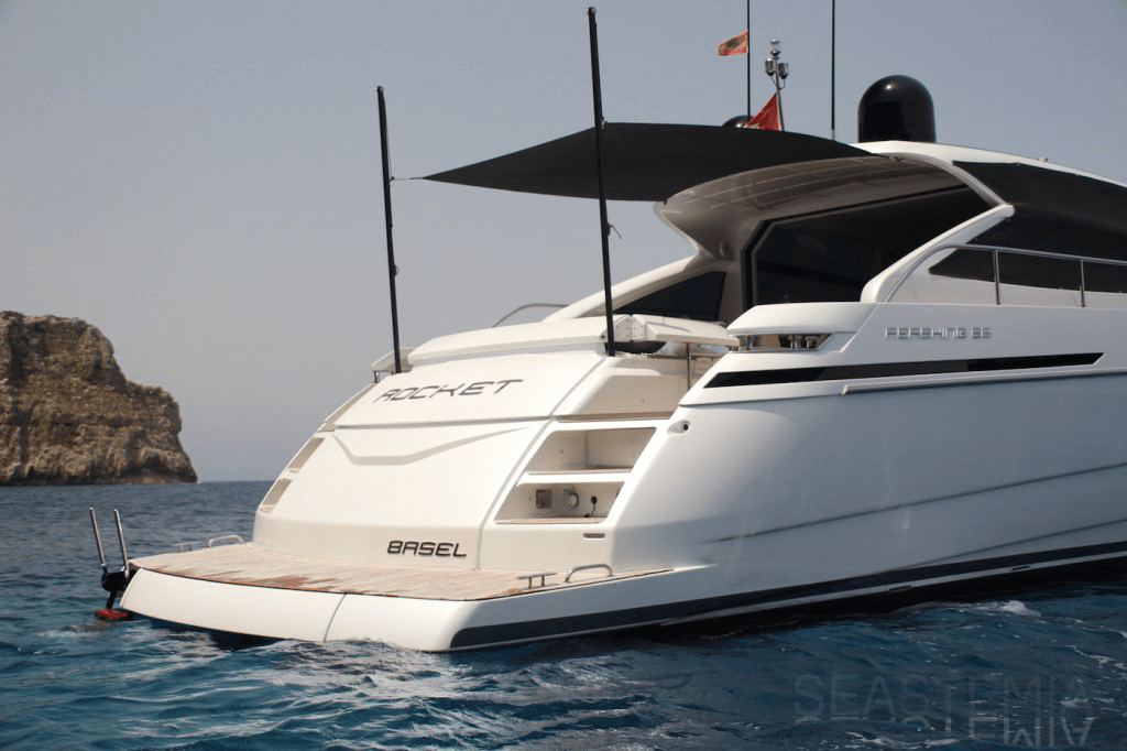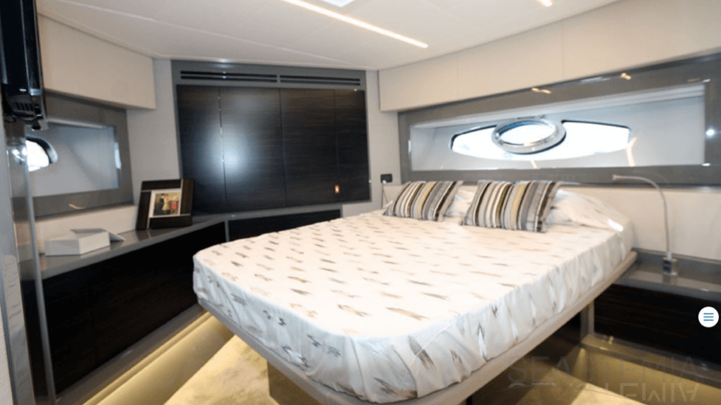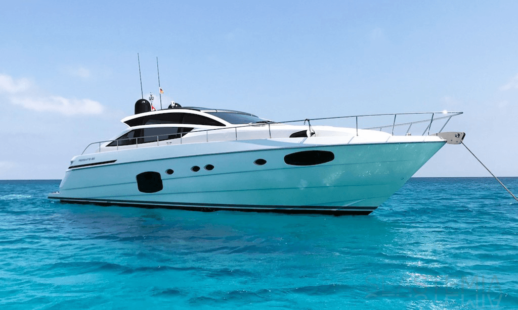 PERSHING 62 in Pearl White Metallic with Seakeeper Gyro Stabilizer and 2 x 1.550 HP MAN V12 engines. Delivered 2018. Only 180 hours ! Private Boat - No Charter.