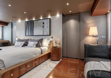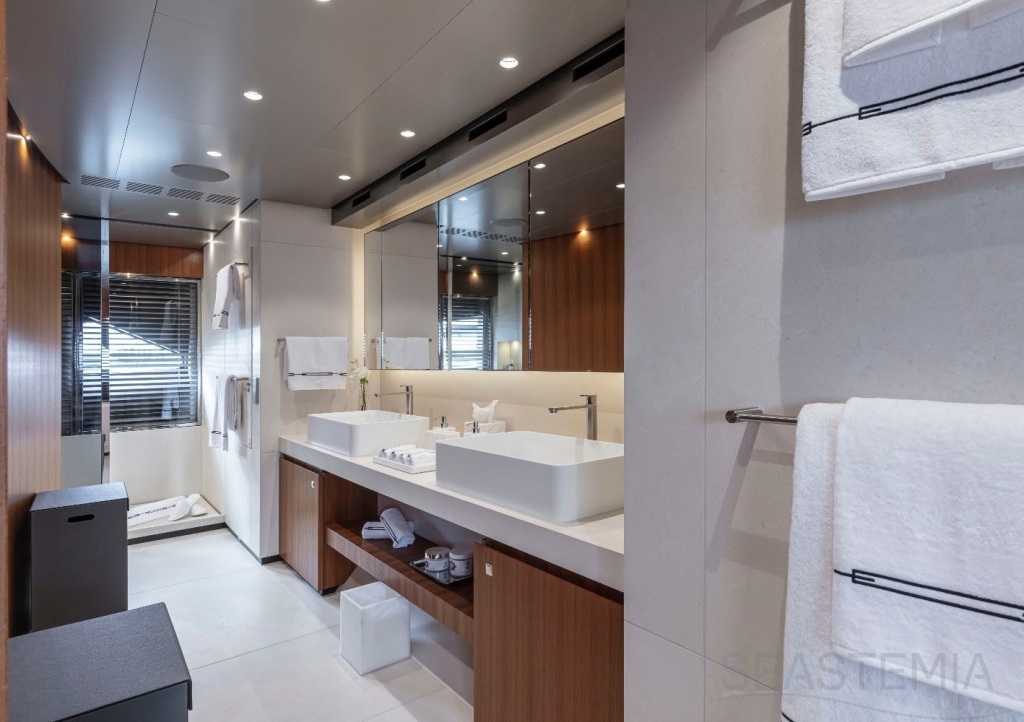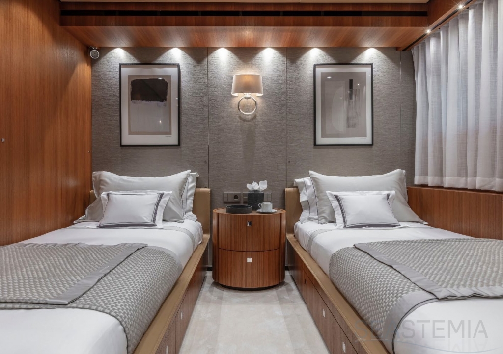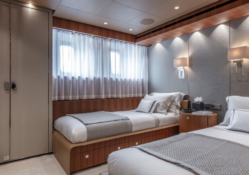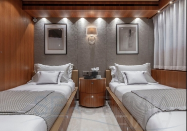 On the lower deck, there are three VIP cabins and two twin cabins, all fitted with their private head.