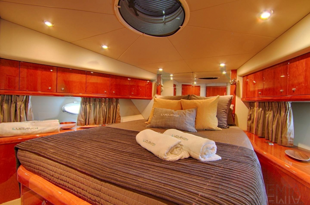 Luciano is a Sunseeker built in 2006. Based in Cannes during the summer, she’s perfect for a private moment with your family or with friends. She can accommodate 6 guests in 3 cabins: 2 double and 1 twin. The exterior dining area enables guests to enjoy most of beautiful Mediterranean landscape around Cannes, Monaco and Saint Tropez. During the day she can cruise with up to 12 guests.