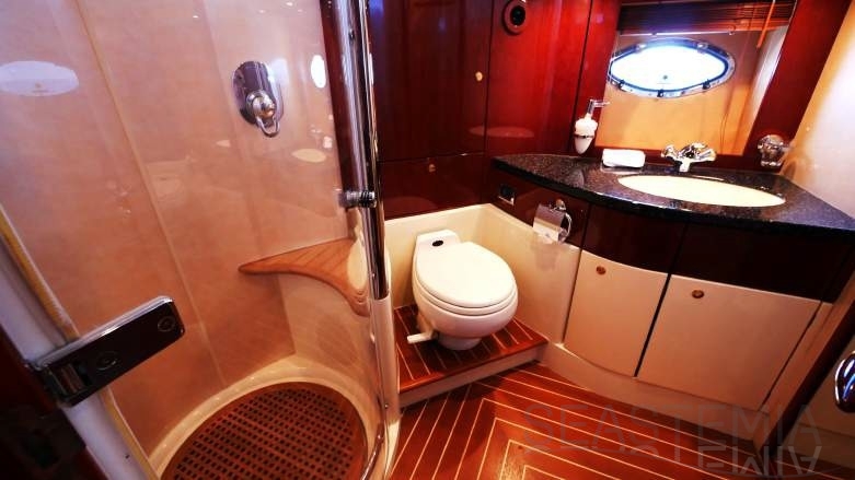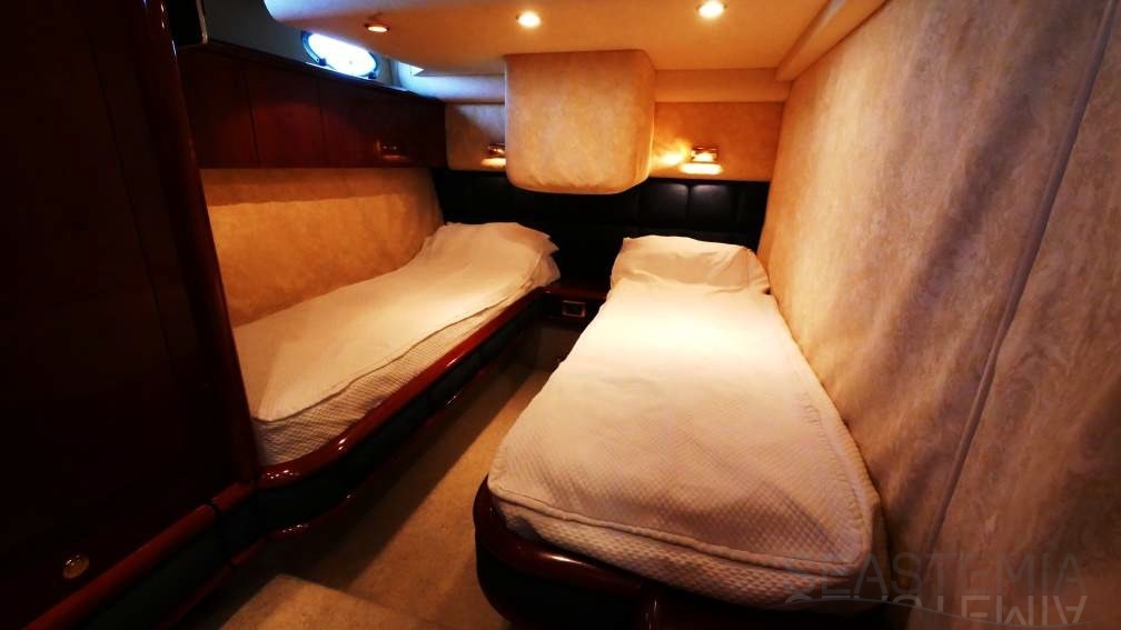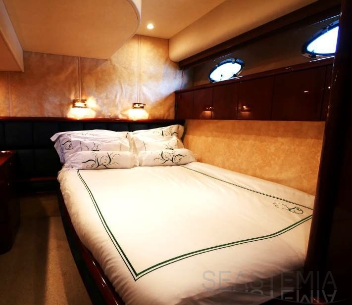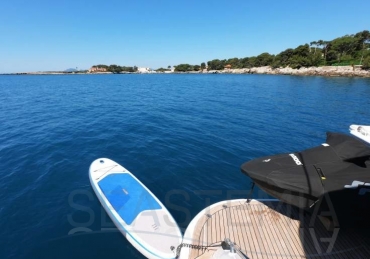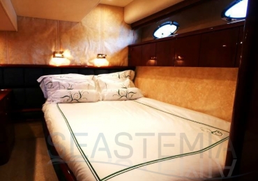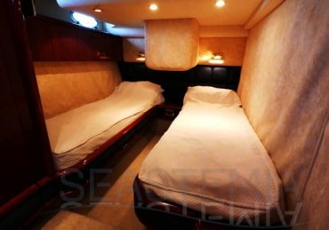 Her exterior spaces are comfortable and can easily welcome 12 persons for day charter. She can accommodate 4 to 6 guests in 3 comfortable cabins, two double and one twin.
