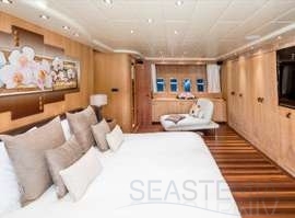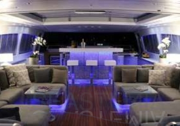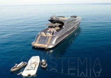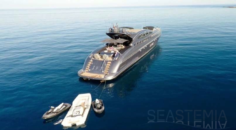 This luxury Mangusta 108 provides a generous accommodation for up to 8 guests in 3 staterooms: a master cabin, a VIP cabin, one double cabin and a lounge area. You will appreciate her elegant lines and the interior that combines a modern and sophisticated atmosphere, with plenty of natural light during the day and refined illumination. With a modern sound system, this exclusive yacht is designed to bring you amazing experiences during all kind of celebrations.