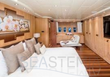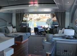 The spacious sundecks make it easy to enjoy the Mediterranean outdoors. Two large sunpads, one at the front deck and the second at the fly, are perfect for spending unlimited hours of sunbathing or simply relaxing during the cruise. A large platform at the aft deck makes it easy and safe to access the crystal-clear waters of Mediterranean Sea.