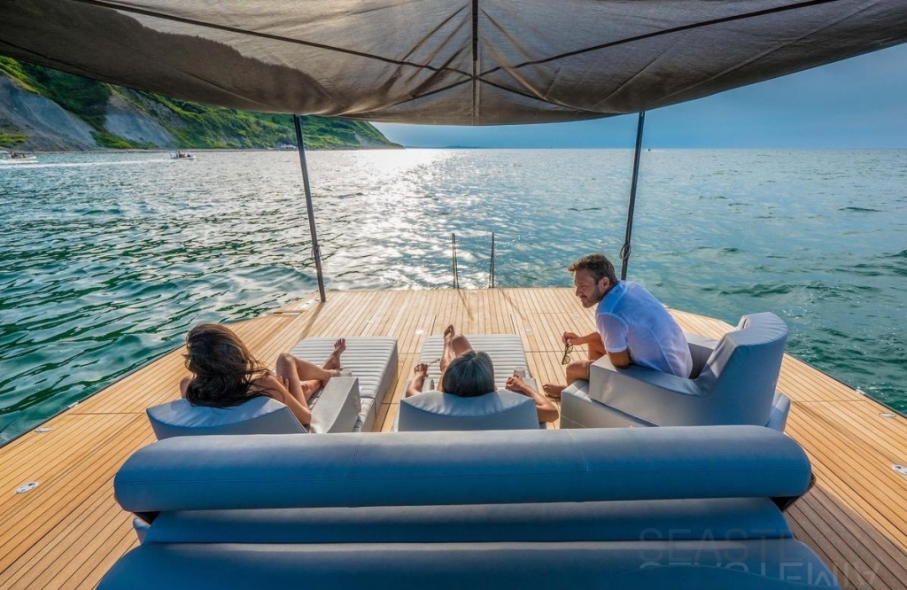 It symbolize the supercar of the sea and offers a large deck where you could relax and marine performance of high level.
