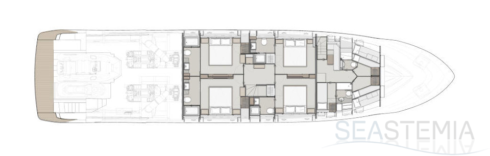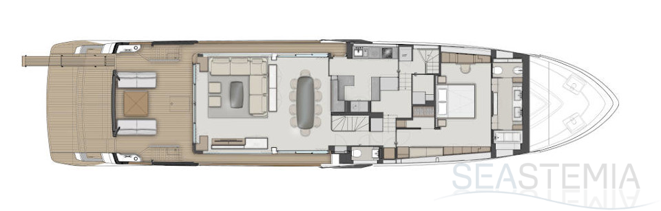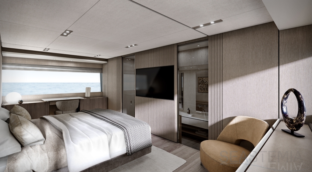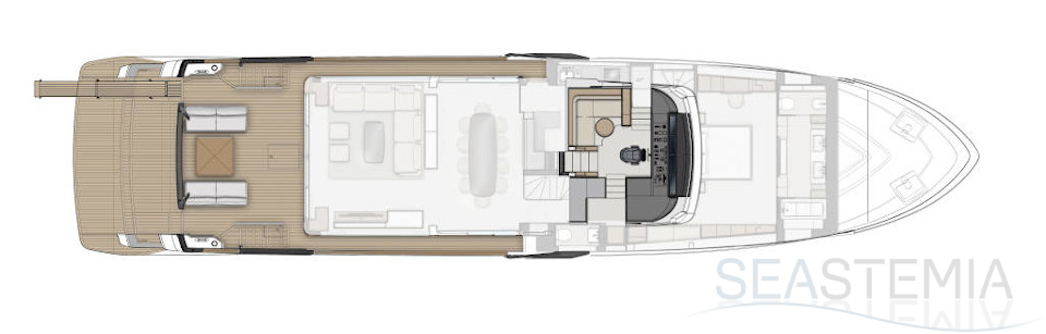 No dream is too big: overall lenght of 100 feet and first breath takingn units which brings Ferretti into new territories. This forthcoming new Majestic and Versatile Ferretti flagship redefine all spaces and onboard life. With its brand new concept aft beach platform as well as its new bow to Fly total connection, this new yacht will offer to improve again owners and guests privacy and onboard life thanks to unprecedent innovative solutions and features.