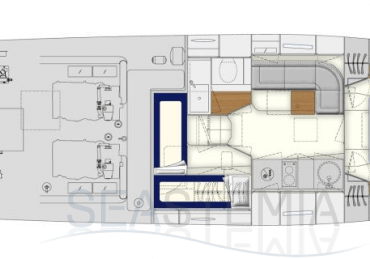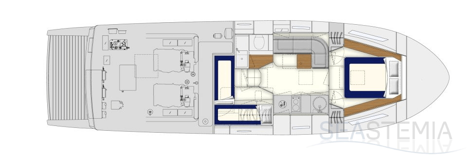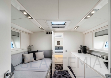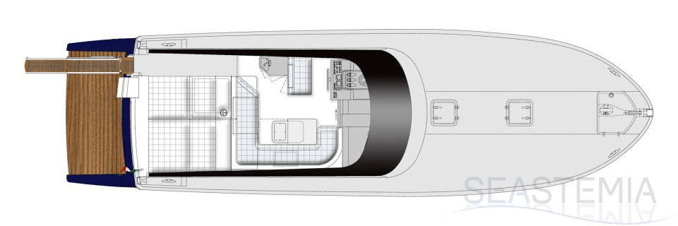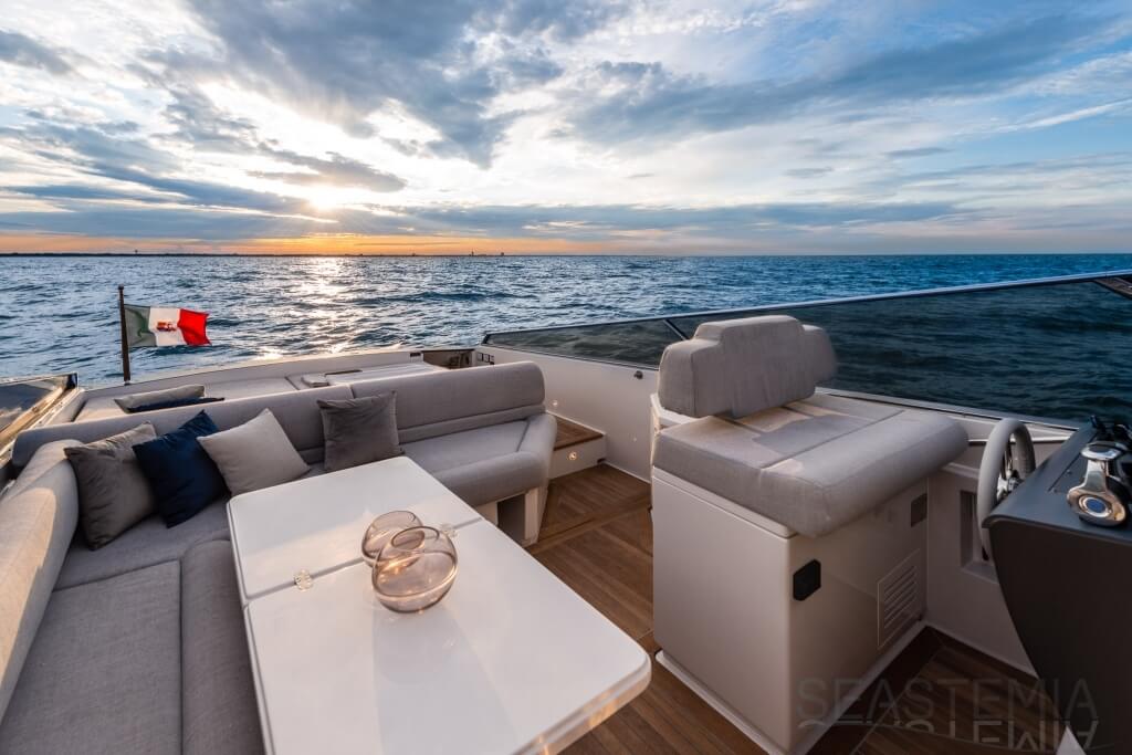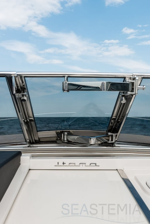 All timer Itama Iconic model, the intemporal design 45S received only touch up in order to be improved again a bit more approaching excellence with the central hatch allowing main deck to fore deck secure central access, more powerfull engines and the stabilisation as new features.