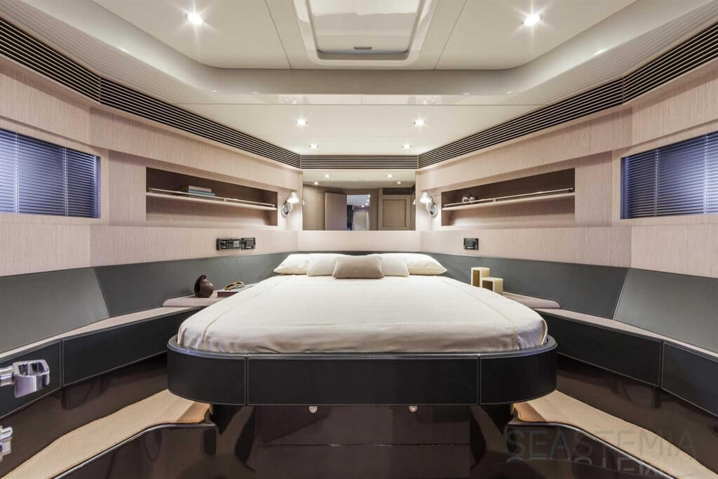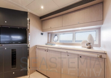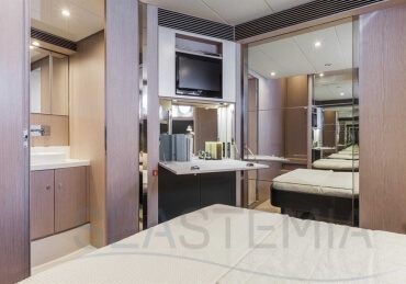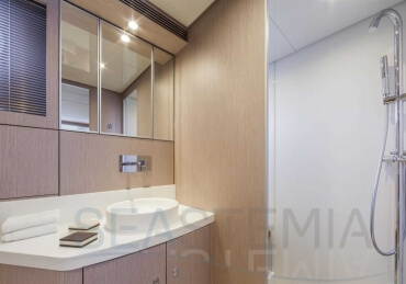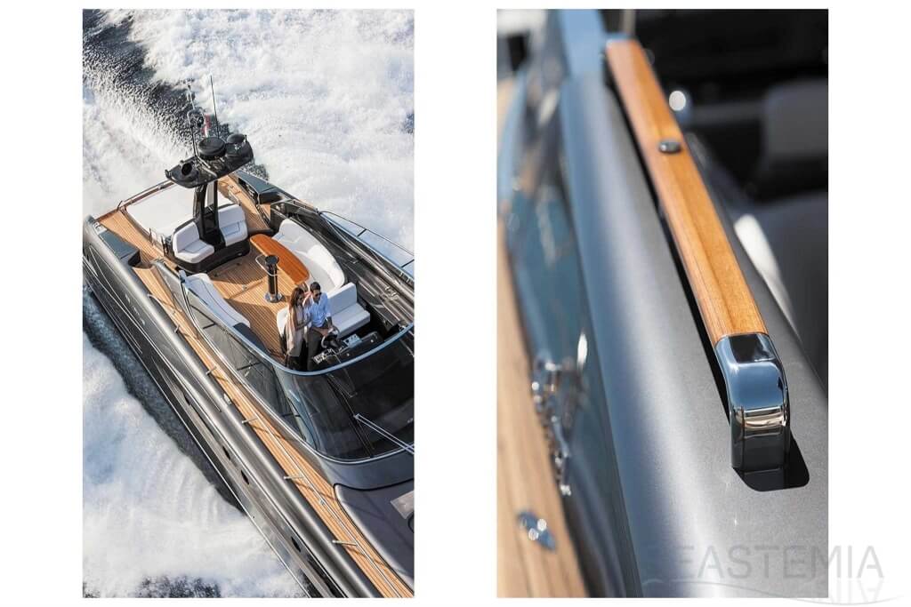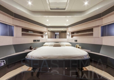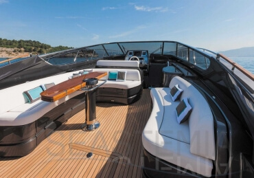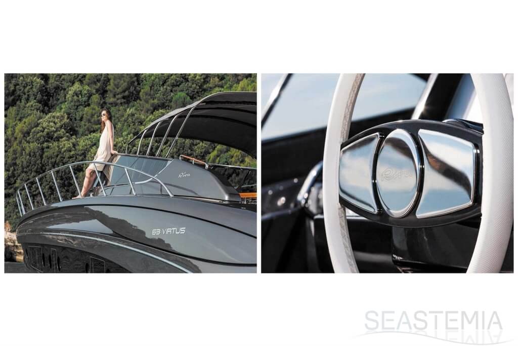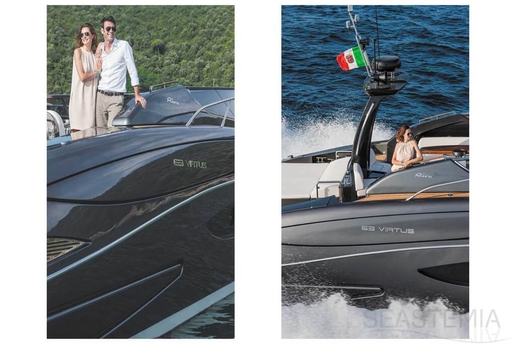In order to fully appreciate the majestic uniqueness of this yacht, we need to read the words of Riva yacht designer Mauro Micheli: “The aesthetic idea is important but I have no interest whatsoever in aesthetics. I am not interested in design in itself, I don't even like it. The dream is far more important, and behind the design there must be an entire situation that helps the dream to express itself. Lightness is crucial.” And although it may seem odd to focus on lightness when talking about a twenty-metre long open yacht with a displacement of thirty tons, you will change your mind when you lower the handle and see how light the bow is on the water as it cuts through the waves and how low it stays, offering a perfect view to the person driving it. Created according to the lines of the Vertigo, a highly successful Riva classic, the 63’ Virtus is an unmatched open yacht in terms of its class, elegance and clean lines. A host of details express Riva's inimitable elegance, including skilfully concealed mooring cleats and electric winches to achieve a seamless aesthetic effect, the vast but beautifully finished foredeck to convey a sense of sober elegance, and the functional yet superbly designed signal mast. 63’ Virtus is an open yacht even when it comes to the interiors, from the huge cockpit through to spaces that offer a sumptuous and unforgettable liveability. Part of their charm comes from the use of contrasting colours and materials, such as the pale shades of the oak alternating with the dark leather, and the juxtaposition of matt and polished varnishes - all in all a special gift to the five senses. Cruising comfort, too, is outstanding, with no perceptible vibration and negligible noise levels when travelling at a top speed of 40.5 knots thanks to innovative engine silencing systems.