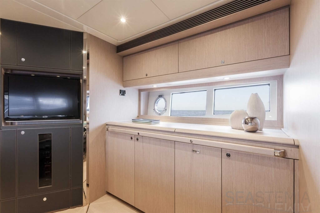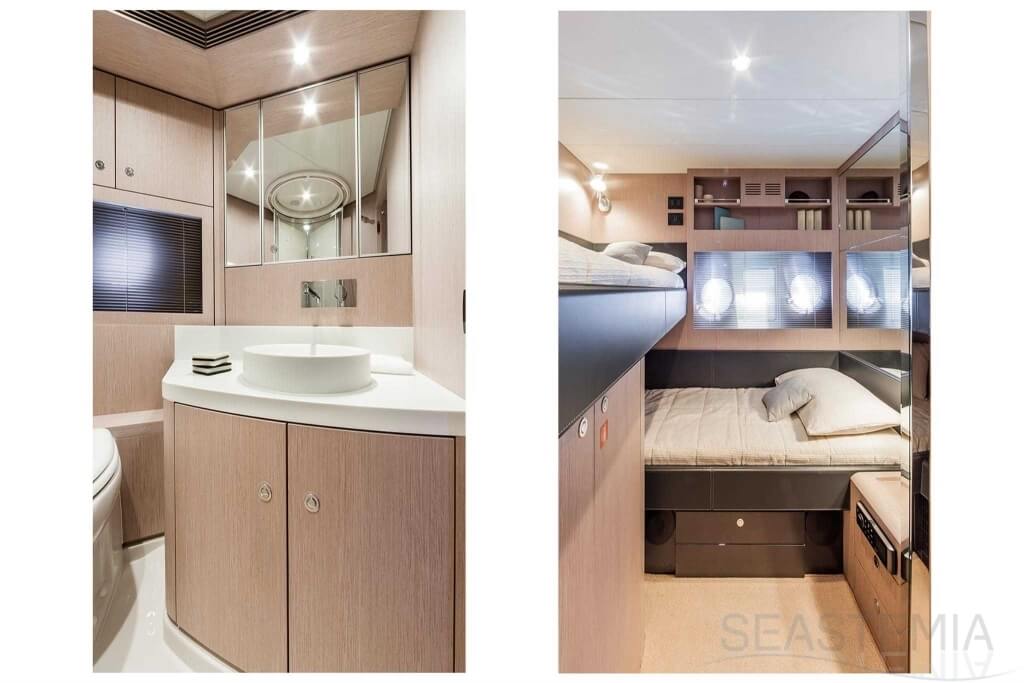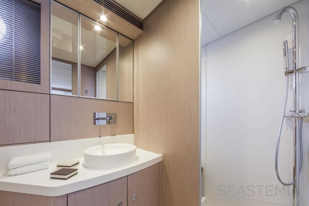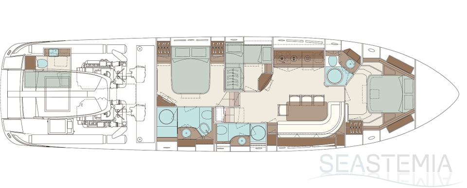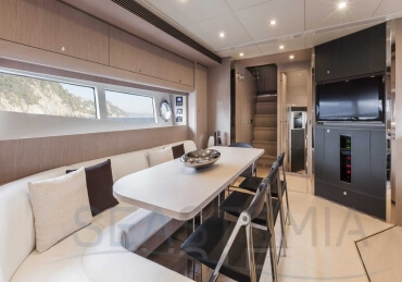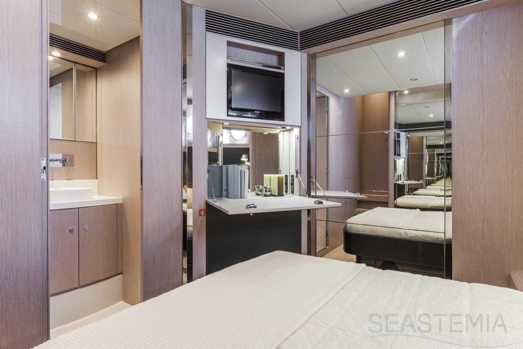 In order to fully appreciate the majestic uniqueness of this yacht, we need to read the words of Riva yacht designer Mauro Micheli: “The aesthetic idea is important but I have no interest whatsoever in aesthetics. I am not interested in design in itself, I don't even like it. The dream is far more important, and behind the design there must be an entire situation that helps the dream to express itself. Lightness is crucial.” And although it may seem odd to focus on lightness when talking about a twenty-metre long open yacht with a displacement of thirty tons, you will change your mind when you lower the handle and see how light the bow is on the water as it cuts through the waves and how low it stays, offering a perfect view to the person driving it. Created according to the lines of the Vertigo, a highly successful Riva classic, the 63’ Virtus is an unmatched open yacht in terms of its class, elegance and clean lines. A host of details express Riva's inimitable elegance, including skilfully concealed mooring cleats and electric winches to achieve a seamless aesthetic effect, the vast but beautifully finished foredeck to convey a sense of sober elegance, and the functional yet superbly designed signal mast. 63’ Virtus is an open yacht even when it comes to the interiors, from the huge cockpit through to spaces that offer a sumptuous and unforgettable liveability. Part of their charm comes from the use of contrasting colours and materials, such as the pale shades of the oak alternating with the dark leather, and the juxtaposition of matt and polished varnishes - all in all a special gift to the five senses. Cruising comfort, too, is outstanding, with no perceptible vibration and negligible noise levels when travelling at a top speed of 40.5 knots thanks to innovative engine silencing systems.