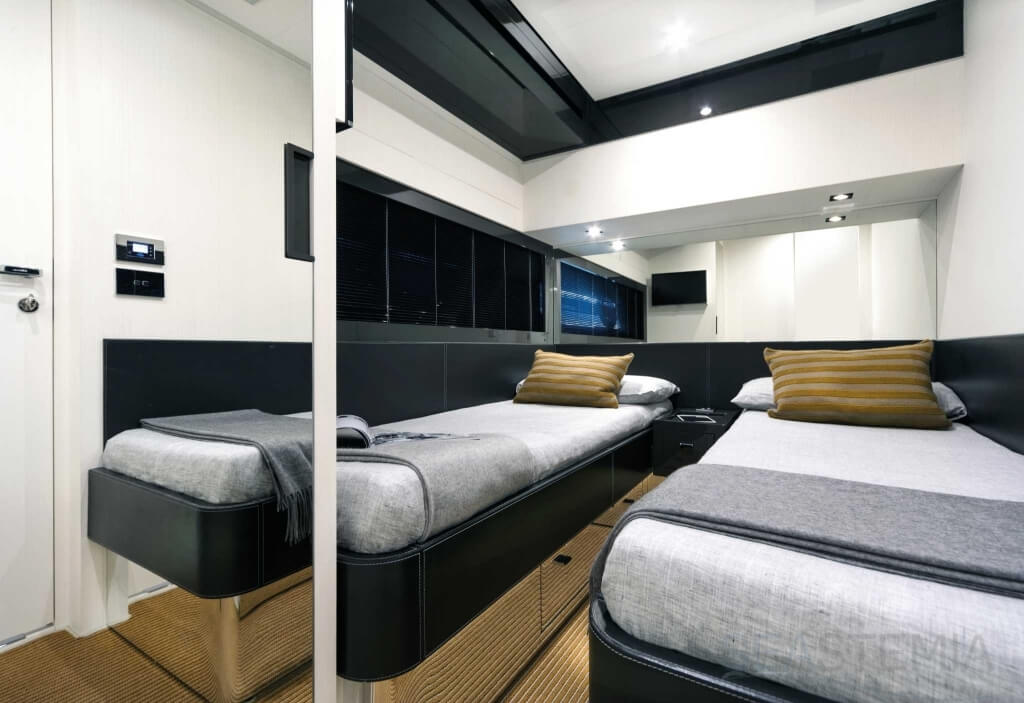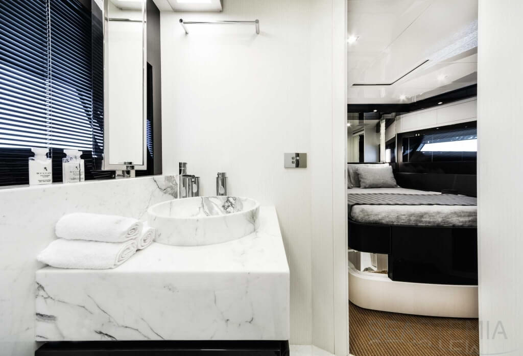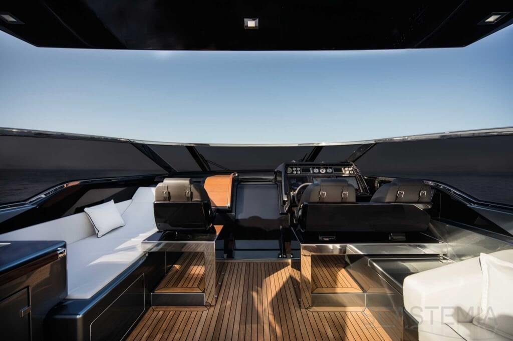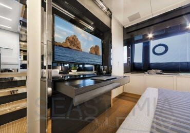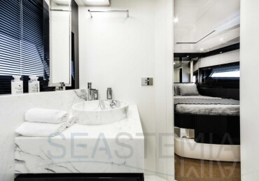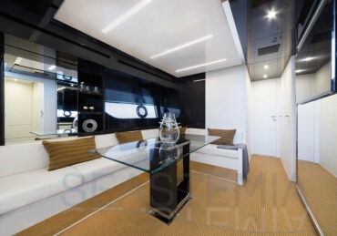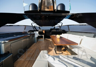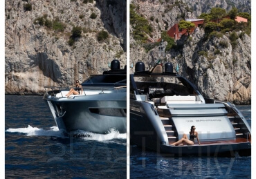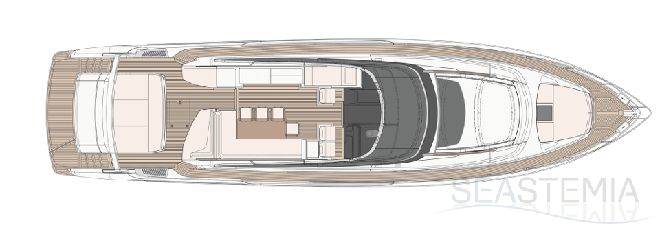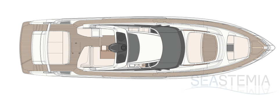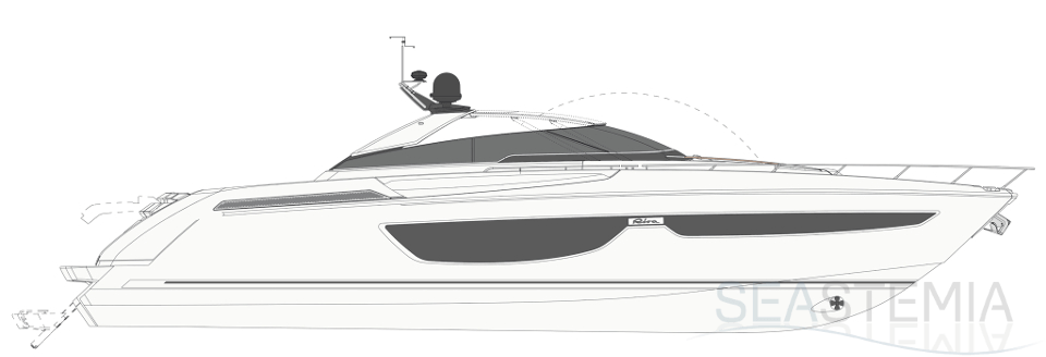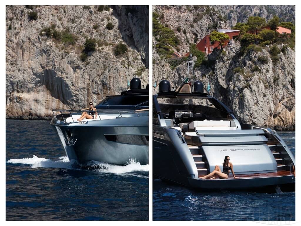 The new Riva convertible 76’ Bahamas is the second model with a dual soul, as both open and coupé. The patented “C-Top” (‘Convertible Top’) system enables a yacht to be transformed from open to coupé mode and vice versa. On the 76’ Bahamas, it effectively doubles the comfort and fun to be enjoyed on board. The new masterpiece brings together the charm of timeless design with the sophisticated pleasure of technological innovation that has produced a super sports boat. With graceful lines and rich in technical features, it is built using cutting-edge materials and sails like a dream. The new model is a further step in the evolutionary path that led to the launch of the 88’ Domino Super and 88’ Florida, the coupé and convertible yachts born of the same design tradition and guided by a similar spirit. Besides, the yacht is based on the technical platform of the 76’ Perseo, Riva’s much-desired coupé model. The layout of the cockpit and helm station, the design of the master suite and lower deck living space, as well as the entire interior styling, have been custom designed for the new convertible. The interior décor also enhances the yacht's Mediterranean character.