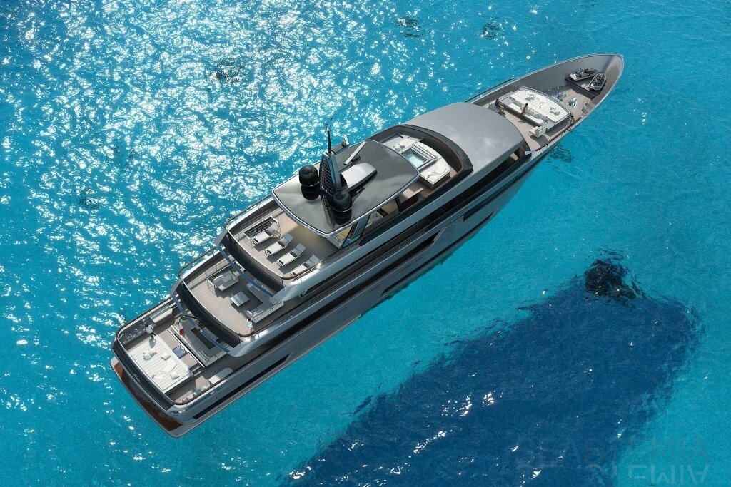 “I’d like to try and cruise on her…”, was the wish Eng. Carlo Riva expressed when the renderings of the first Riva 50-meter mega yacht were shown to him. Since September 2014, when in Monaco Ferretti Group’s Top Management announced the creation of the ‘Superyachts Division’, the ideas and projects revolving around brand's new light alloy fleet have developed rapidly. The dream of building light alloy, displacement Riva superyachts, entirely customizable by the Owner in terms of interior outfitting and décor, takes forward the ambition and ingenuity that between the 1960s and ’70s pushed by Carlo Riva. Today this dream has turned into an increasingly tangible and exciting reality. Indeed, a Riva engineering and design team entirely devoted to the ‘Superyachts Division’ settled down at the Group's Ancona shipyard. Riva’s ‘Superyachts Division’ offers its Owners two different lines, using the same naval platforms. The first line will draw inspiration from the brand’s legendary history, and from the class and perfection of true yachting masterpieces like the famous ‘Caravelle’, conceived by Eng. Riva in 1964. The second sporty line will feature details reminding of the last generation of Riva coupé yachts, the one to which the recent 76' Perseo and 88' Domino Super belong. It will be just from these latter models’ slender and modern look that the second line’s more aggressive profile and lines will draw inspiration. Each of the two lines will be available in four different sizes: 50 meters, 60 meters, 70 meters and 90 meters in length.