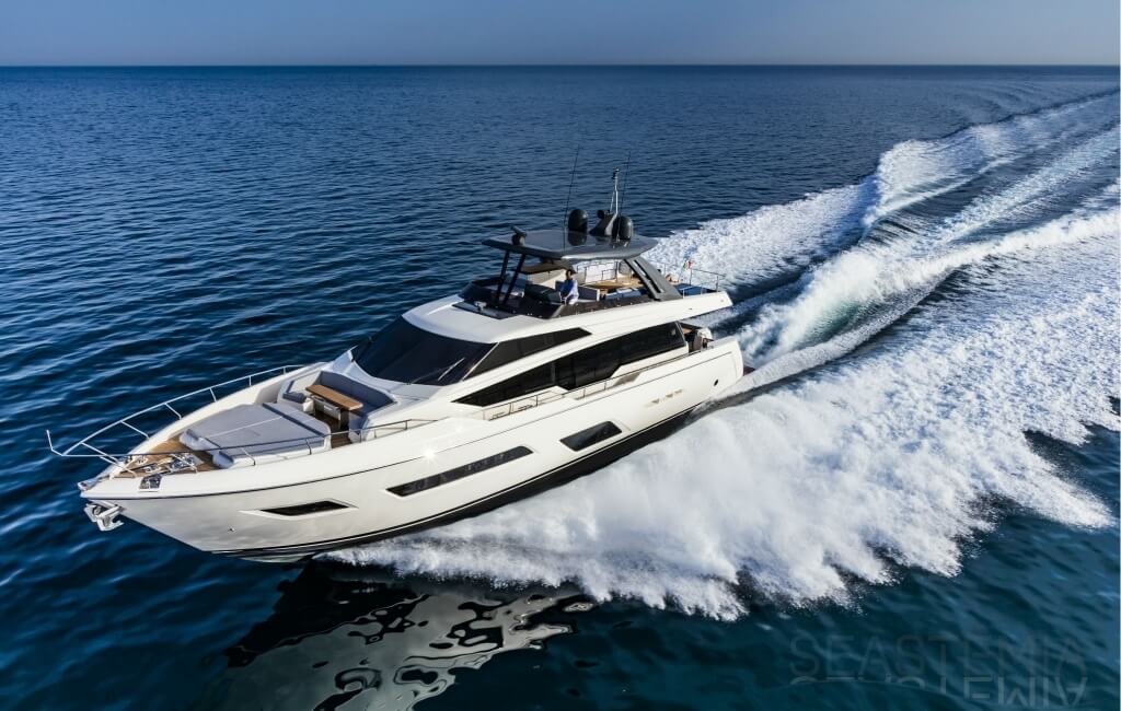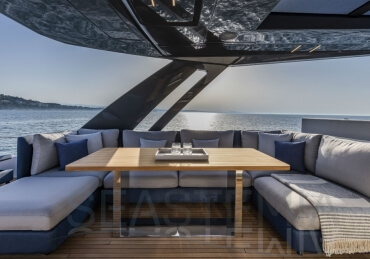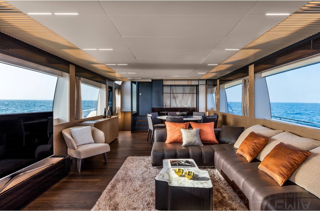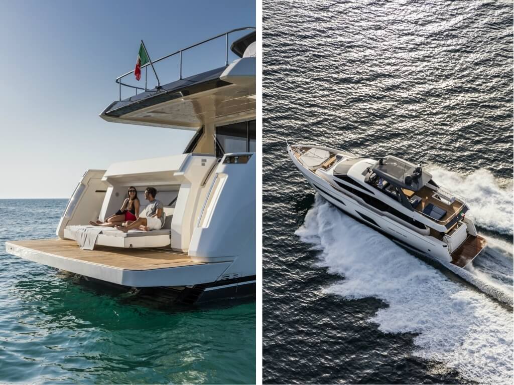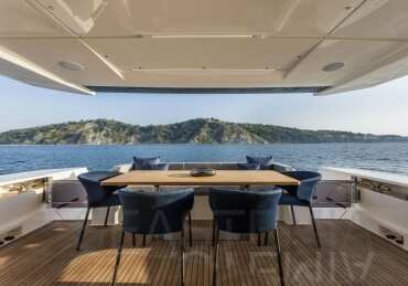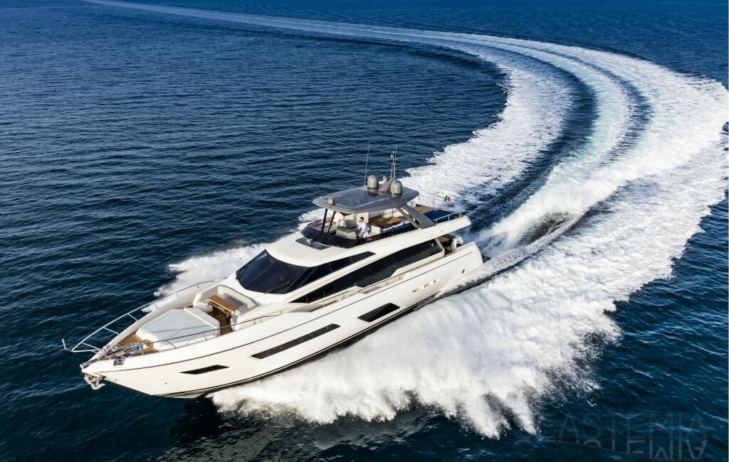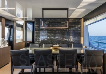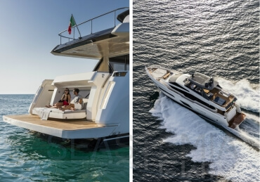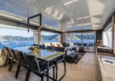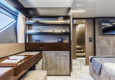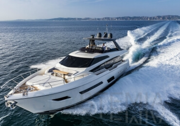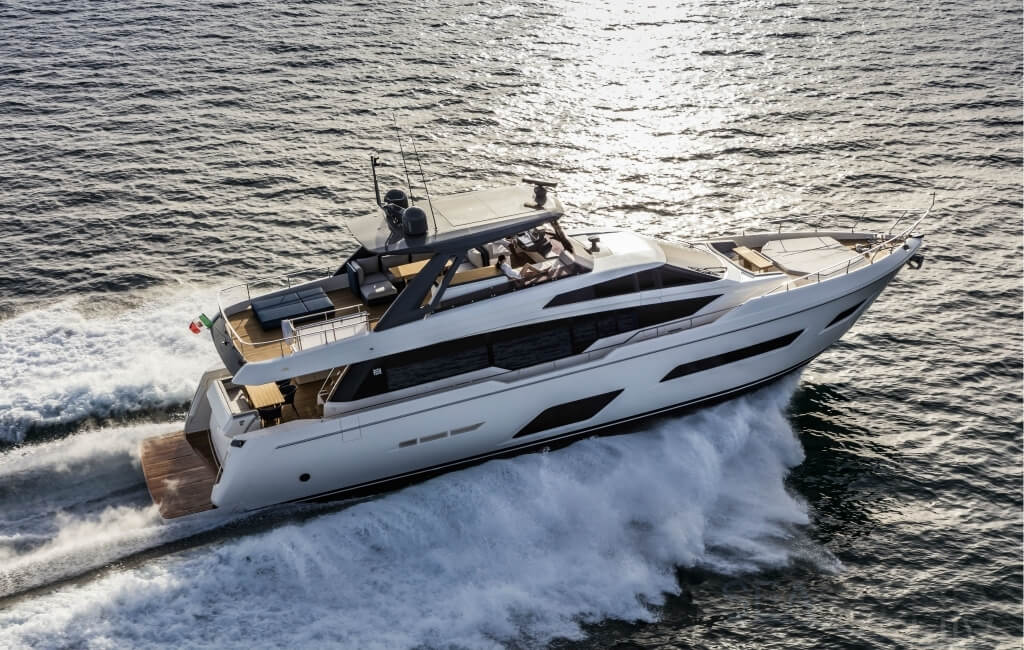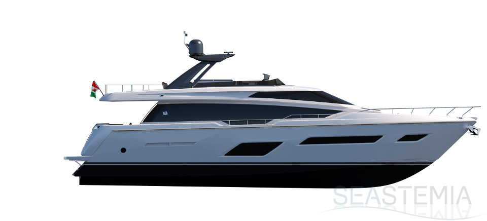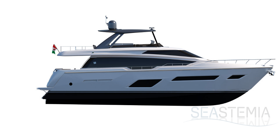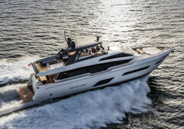 Evolution is the keyword that guides almost half a century of design and vision at Ferretti Yachts. Continuous research driven by innovation to create yachts that meet each owner’s unique desires in terms of comfort, style, navigation and safety at sea. The most recent yacht created with this philosophy is the new Ferretti Yachts 780. This philosophy is also evident in the aerodynamic design, which is brought to life by the clean shapes and sleek lines, accentuated by the choice to resize the height of the hull’s topsides to the benefit of the overall sporty character of the yacht. The aggressive look is enhanced by the separation between fiberglass elements and the glass surfaces. The hull design in particular takes the stylistic feature of the three windows corresponding to the guest cabins, from the new Ferretti Yachts 450 and 550. In the superstructure, we find the shapes of the over 80’ flybridge yachts, which are added to the front and side section of the command station. An important innovation is the stern area, which offers the comforts of a real beach club with the new door operating system. Once the tailgate is fully opened, the space is transformed into a remarkable relaxing area close to the water. The shipyard offers the installation of a roll bar for satellite systems, which can be integrated by a modular hard top with a center awning or glass protection. Like the entire Ferretti Yachts fleet, the new 78-foot will be available in the version Tai He Ban. This design philosophy captivated audiences and critics in all Asia Pacific markets.