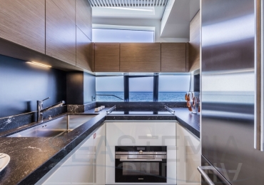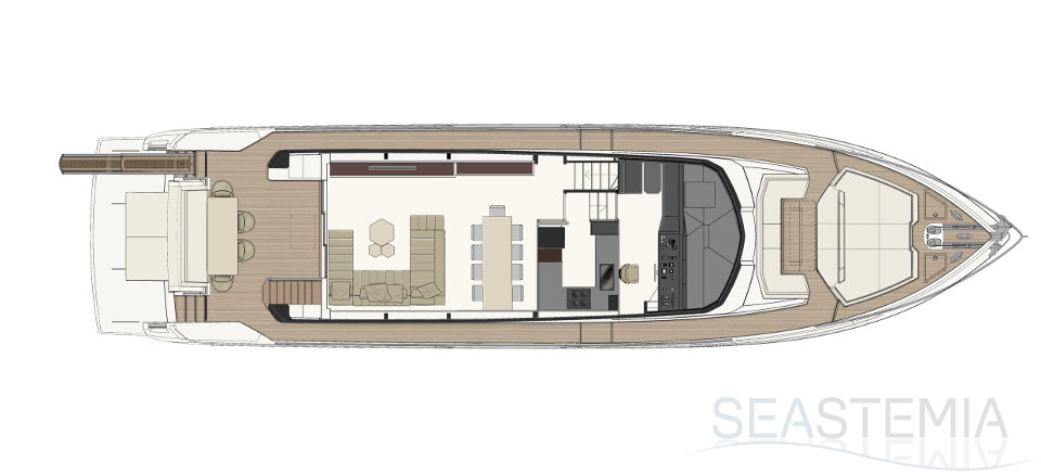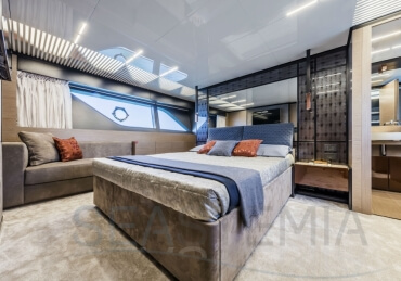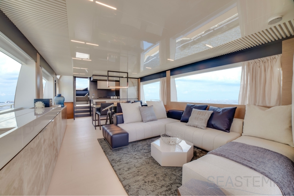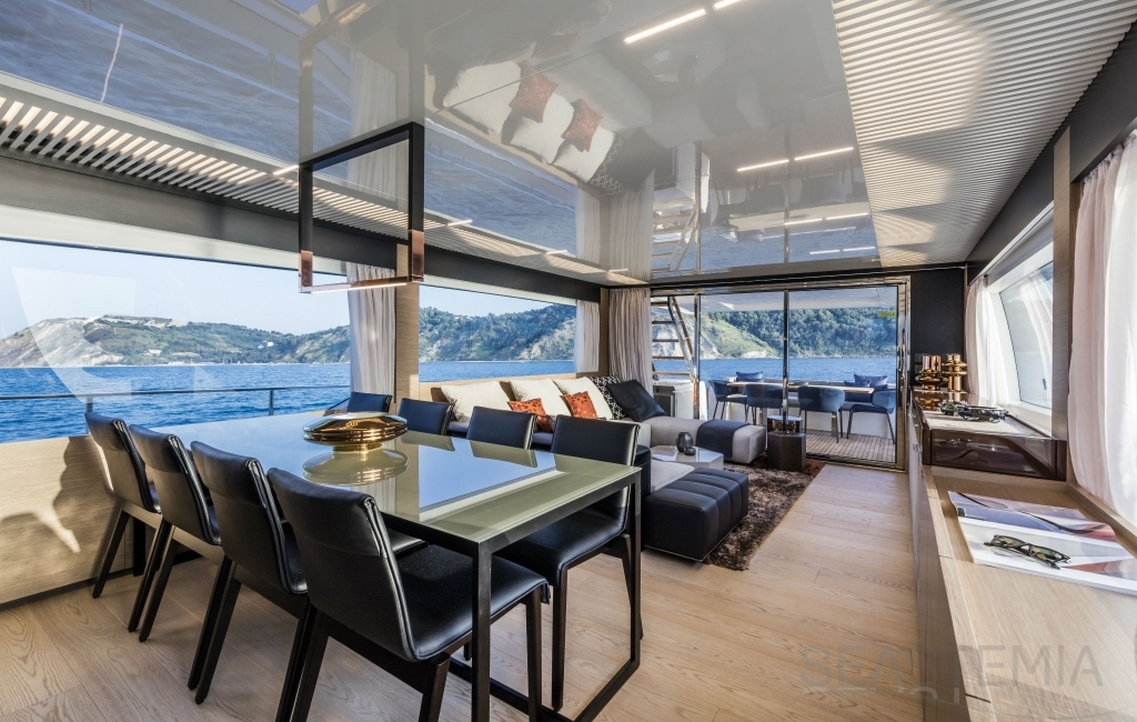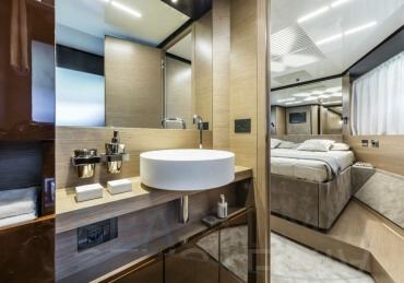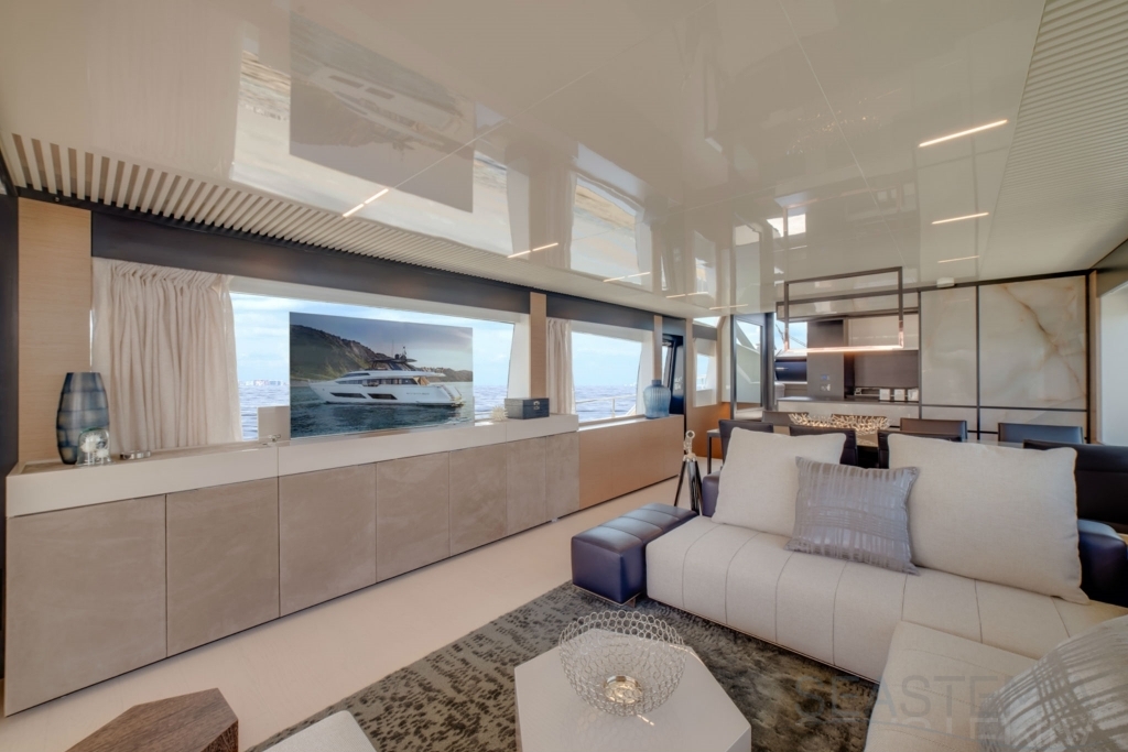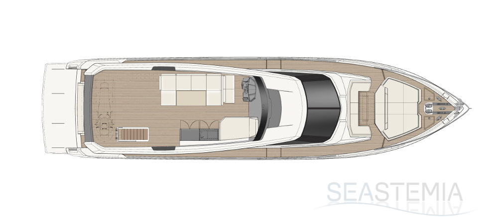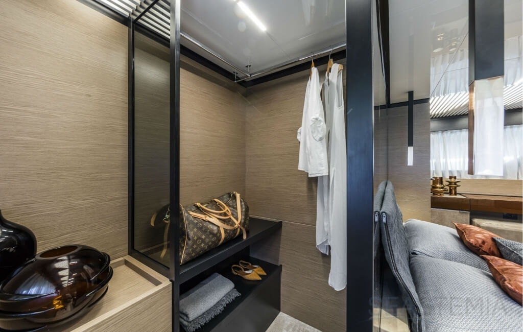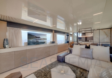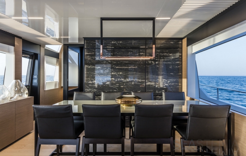 Evolution is the keyword that guides almost half a century of design and vision at Ferretti Yachts. Continuous research driven by innovation to create yachts that meet each owner’s unique desires in terms of comfort, style, navigation and safety at sea. The most recent yacht created with this philosophy is the new Ferretti Yachts 780. This philosophy is also evident in the aerodynamic design, which is brought to life by the clean shapes and sleek lines, accentuated by the choice to resize the height of the hull’s topsides to the benefit of the overall sporty character of the yacht. The aggressive look is enhanced by the separation between fiberglass elements and the glass surfaces. The hull design in particular takes the stylistic feature of the three windows corresponding to the guest cabins, from the new Ferretti Yachts 450 and 550. In the superstructure, we find the shapes of the over 80’ flybridge yachts, which are added to the front and side section of the command station. An important innovation is the stern area, which offers the comforts of a real beach club with the new door operating system. Once the tailgate is fully opened, the space is transformed into a remarkable relaxing area close to the water. The shipyard offers the installation of a roll bar for satellite systems, which can be integrated by a modular hard top with a center awning or glass protection. Like the entire Ferretti Yachts fleet, the new 78-foot will be available in the version Tai He Ban. This design philosophy captivated audiences and critics in all Asia Pacific markets.
