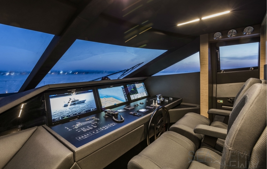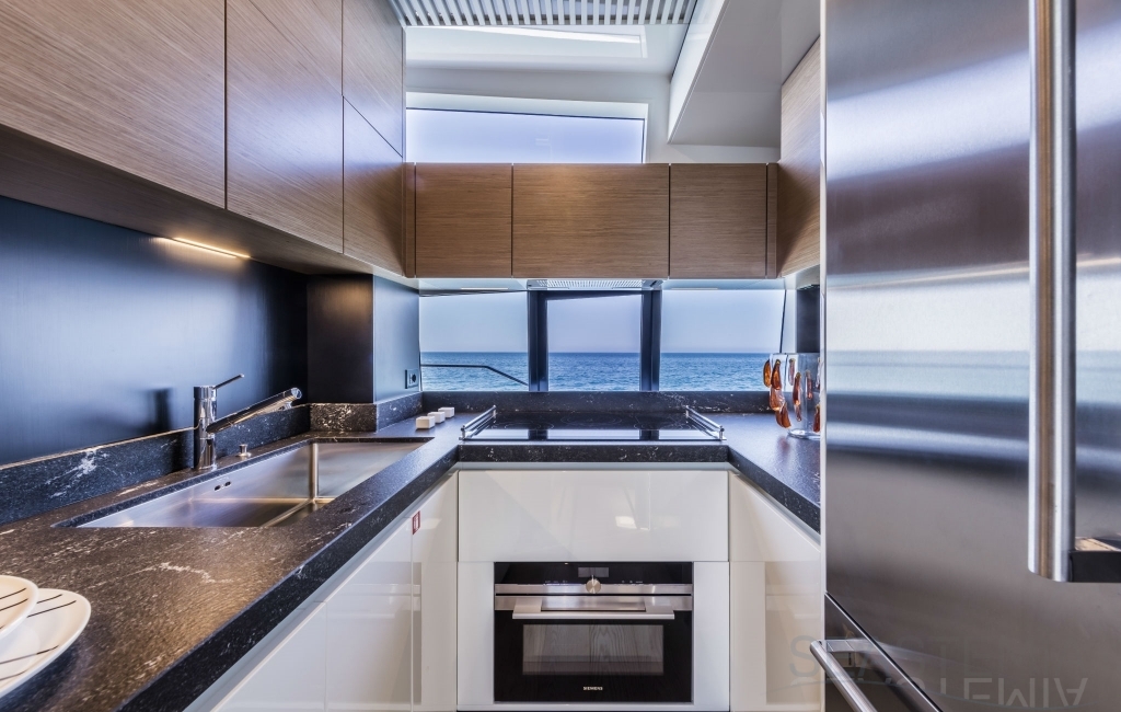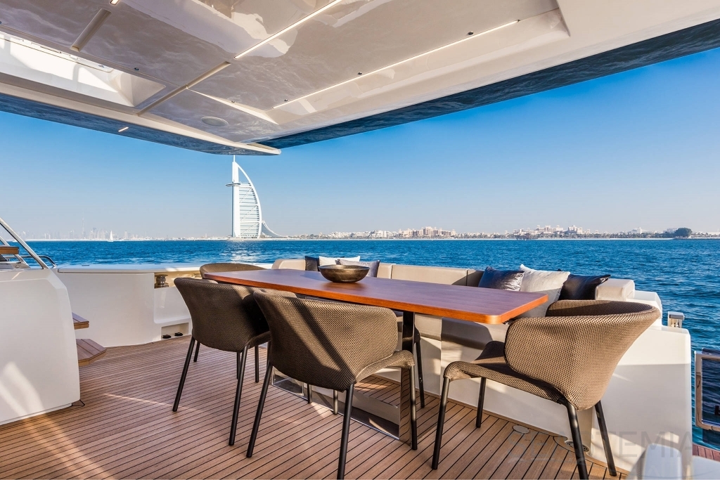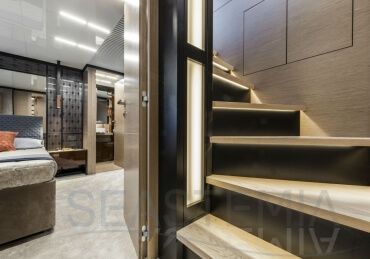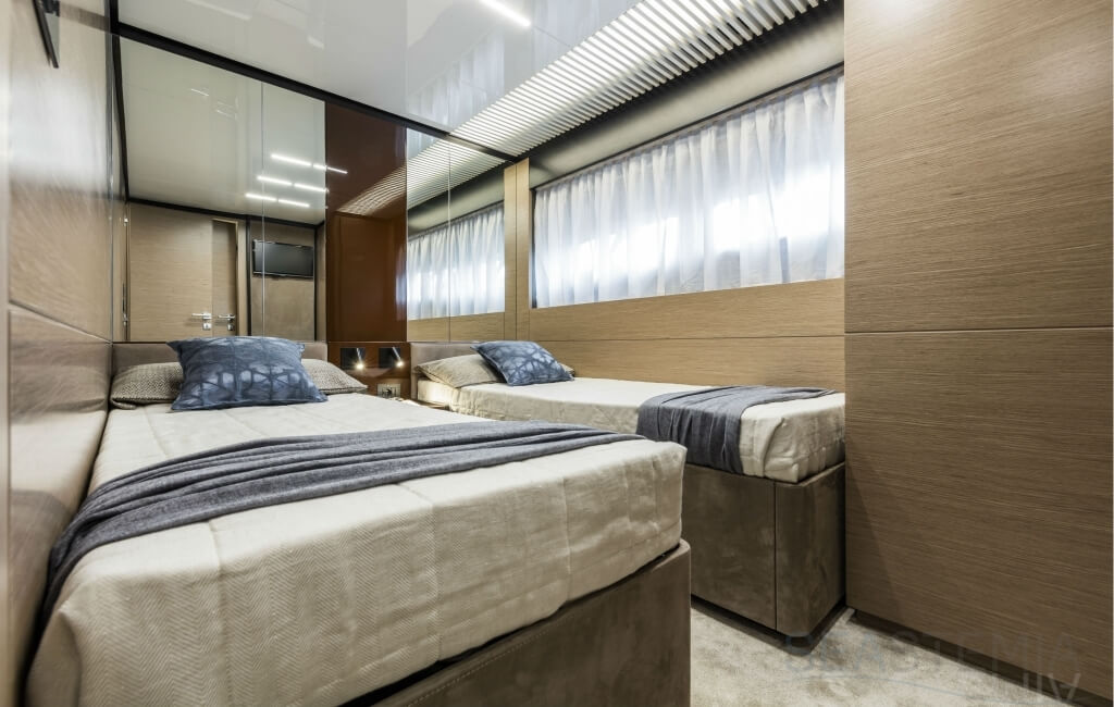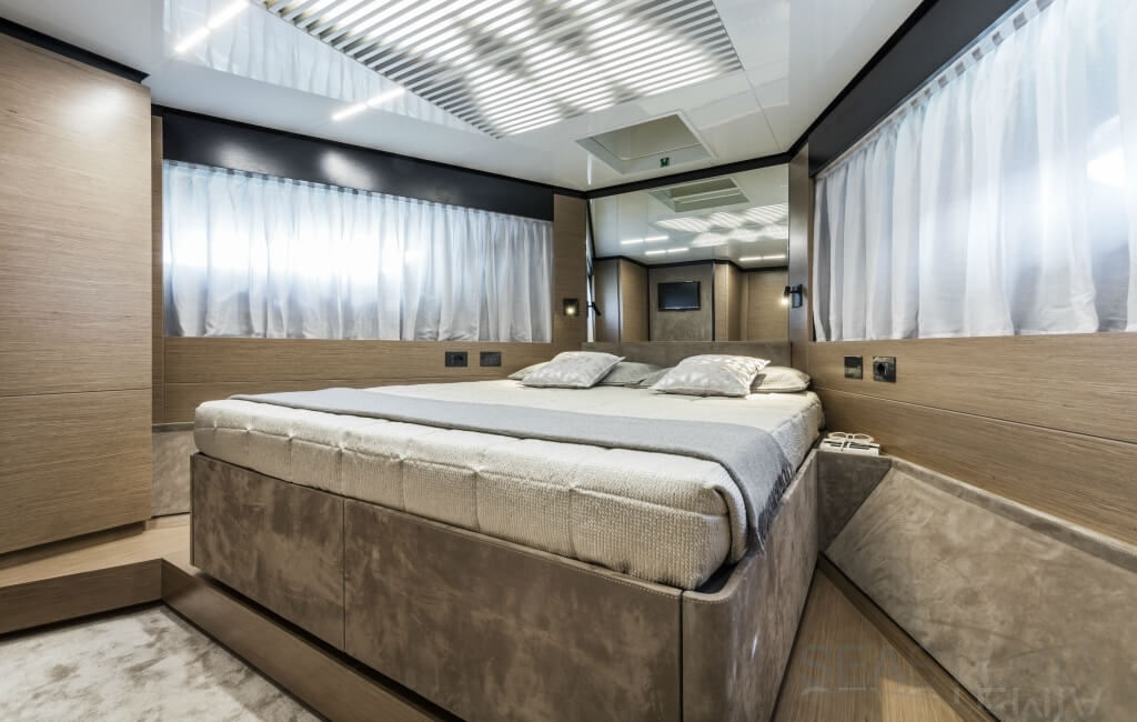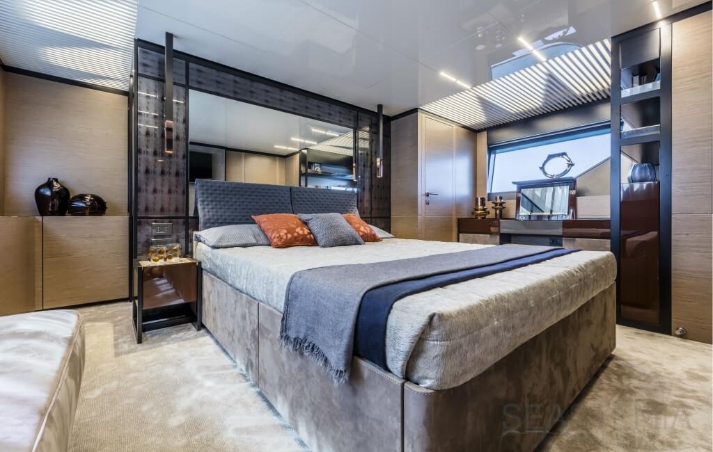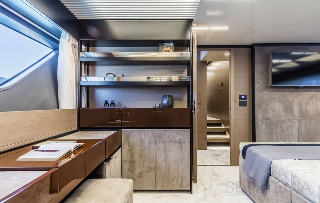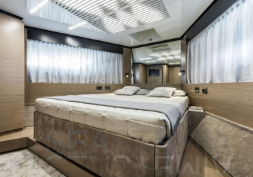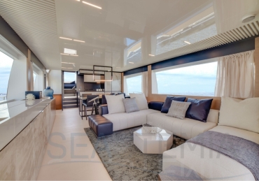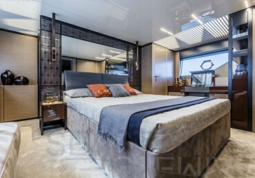 Evolution is the keyword that guides almost half a century of design and vision at Ferretti Yachts. Continuous research driven by innovation to create yachts that meet each owner’s unique desires in terms of comfort, style, navigation and safety at sea. The most recent yacht created with this philosophy is the new Ferretti Yachts 780. This philosophy is also evident in the aerodynamic design, which is brought to life by the clean shapes and sleek lines, accentuated by the choice to resize the height of the hull’s topsides to the benefit of the overall sporty character of the yacht. The aggressive look is enhanced by the separation between fiberglass elements and the glass surfaces. The hull design in particular takes the stylistic feature of the three windows corresponding to the guest cabins, from the new Ferretti Yachts 450 and 550. In the superstructure, we find the shapes of the over 80’ flybridge yachts, which are added to the front and side section of the command station. An important innovation is the stern area, which offers the comforts of a real beach club with the new door operating system. Once the tailgate is fully opened, the space is transformed into a remarkable relaxing area close to the water. The shipyard offers the installation of a roll bar for satellite systems, which can be integrated by a modular hard top with a center awning or glass protection. Like the entire Ferretti Yachts fleet, the new 78-foot will be available in the version Tai He Ban. This design philosophy captivated audiences and critics in all Asia Pacific markets.