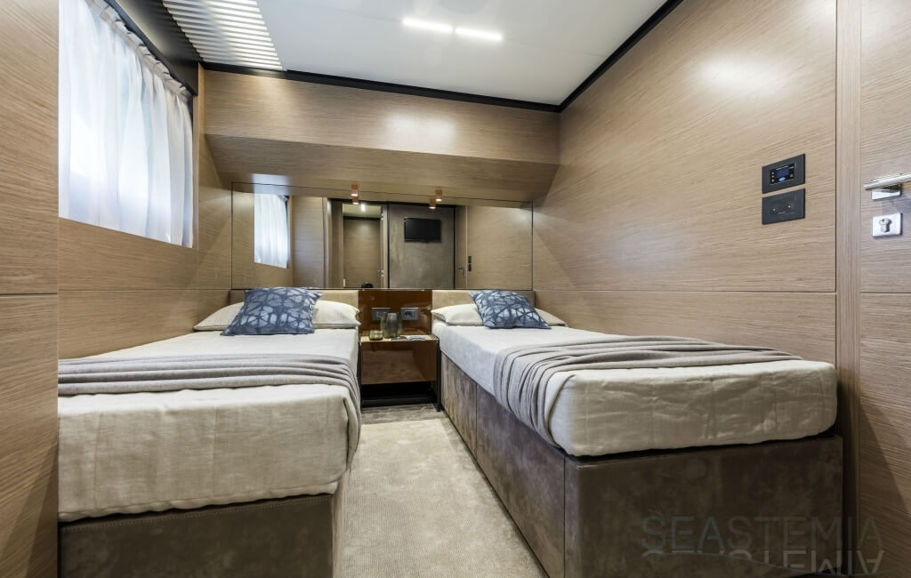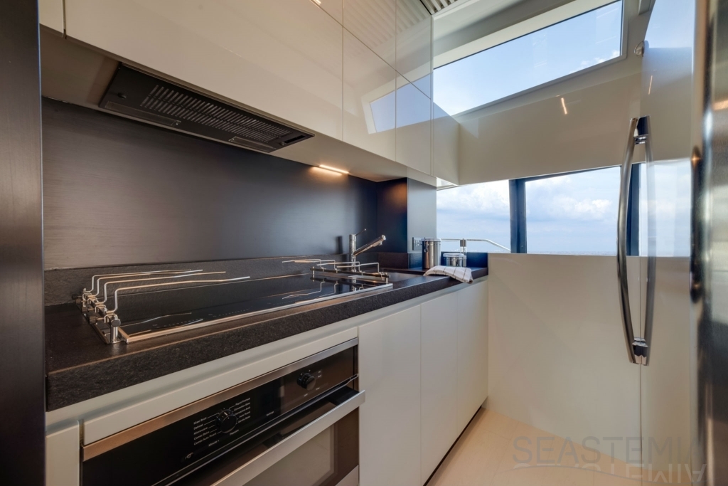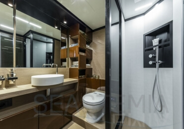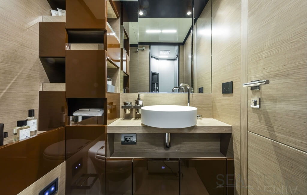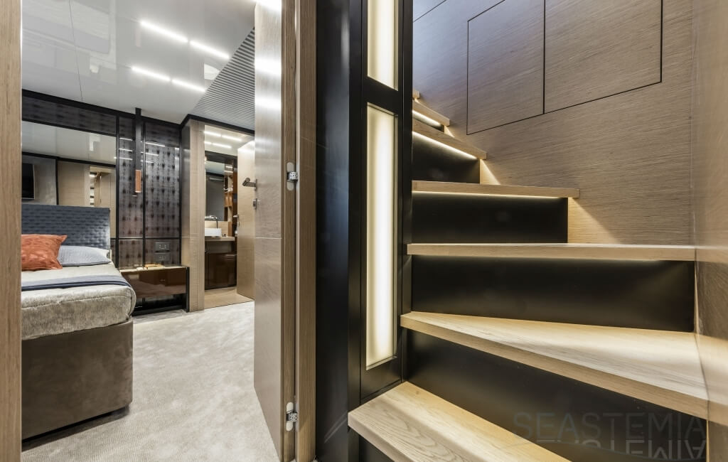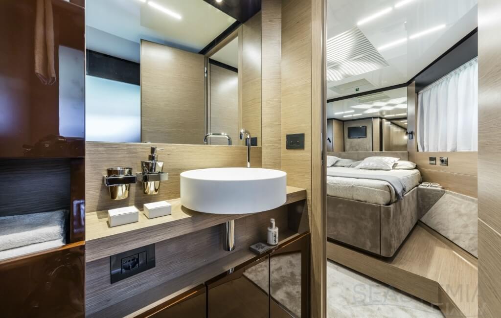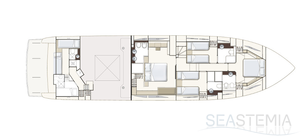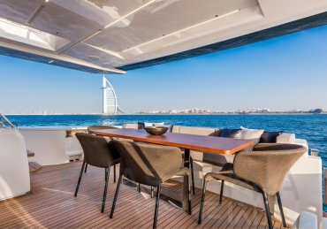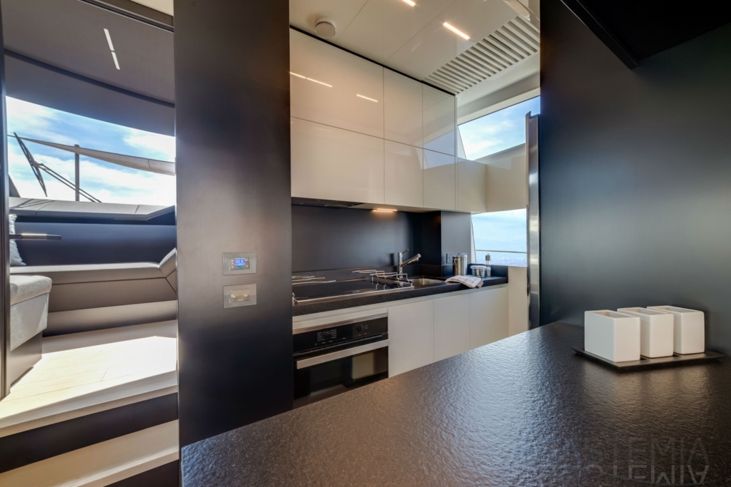 Evolution is the keyword that guides almost half a century of design and vision at Ferretti Yachts. Continuous research driven by innovation to create yachts that meet each owner’s unique desires in terms of comfort, style, navigation and safety at sea. The most recent yacht created with this philosophy is the new Ferretti Yachts 780. This philosophy is also evident in the aerodynamic design, which is brought to life by the clean shapes and sleek lines, accentuated by the choice to resize the height of the hull’s topsides to the benefit of the overall sporty character of the yacht. The aggressive look is enhanced by the separation between fiberglass elements and the glass surfaces. The hull design in particular takes the stylistic feature of the three windows corresponding to the guest cabins, from the new Ferretti Yachts 450 and 550. In the superstructure, we find the shapes of the over 80’ flybridge yachts, which are added to the front and side section of the command station. An important innovation is the stern area, which offers the comforts of a real beach club with the new door operating system. Once the tailgate is fully opened, the space is transformed into a remarkable relaxing area close to the water. The shipyard offers the installation of a roll bar for satellite systems, which can be integrated by a modular hard top with a center awning or glass protection. Like the entire Ferretti Yachts fleet, the new 78-foot will be available in the version Tai He Ban. This design philosophy captivated audiences and critics in all Asia Pacific markets.