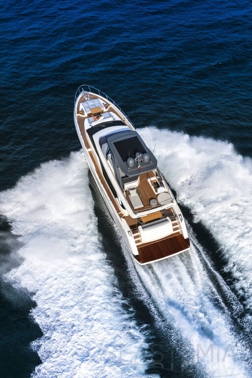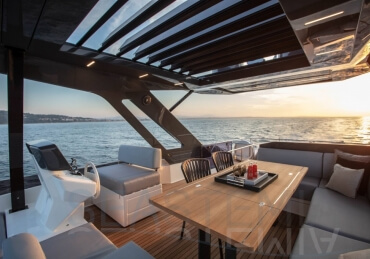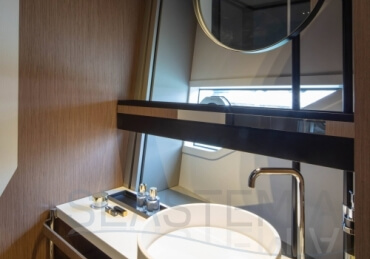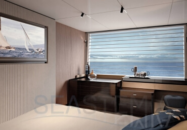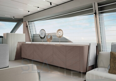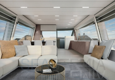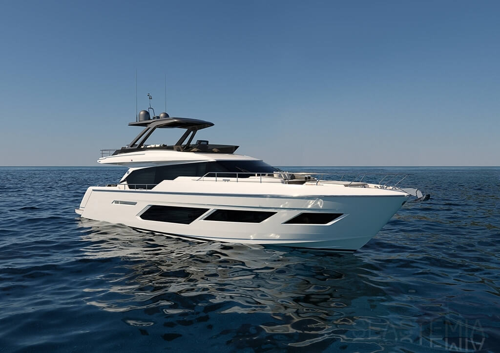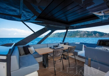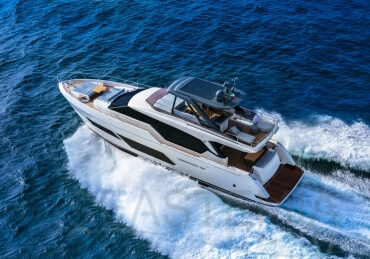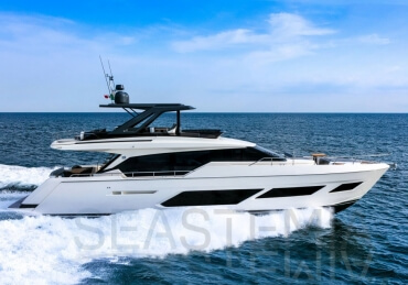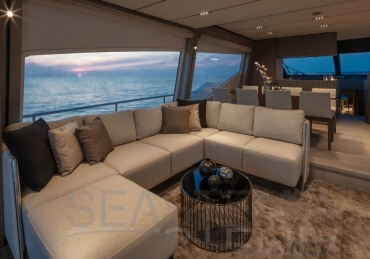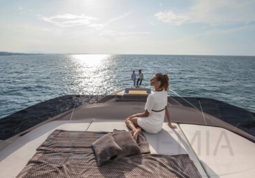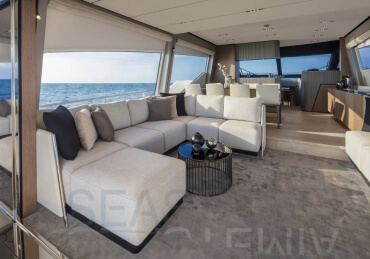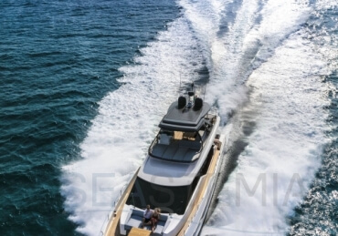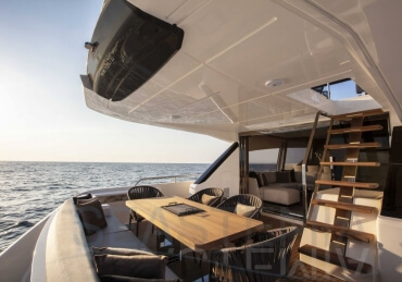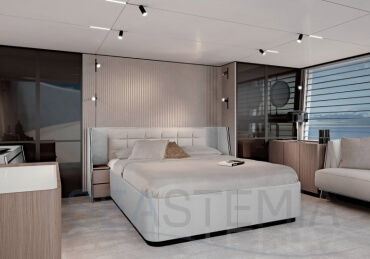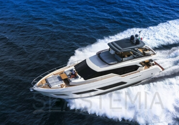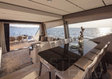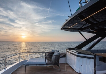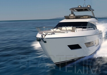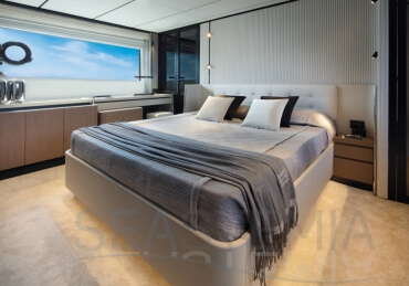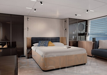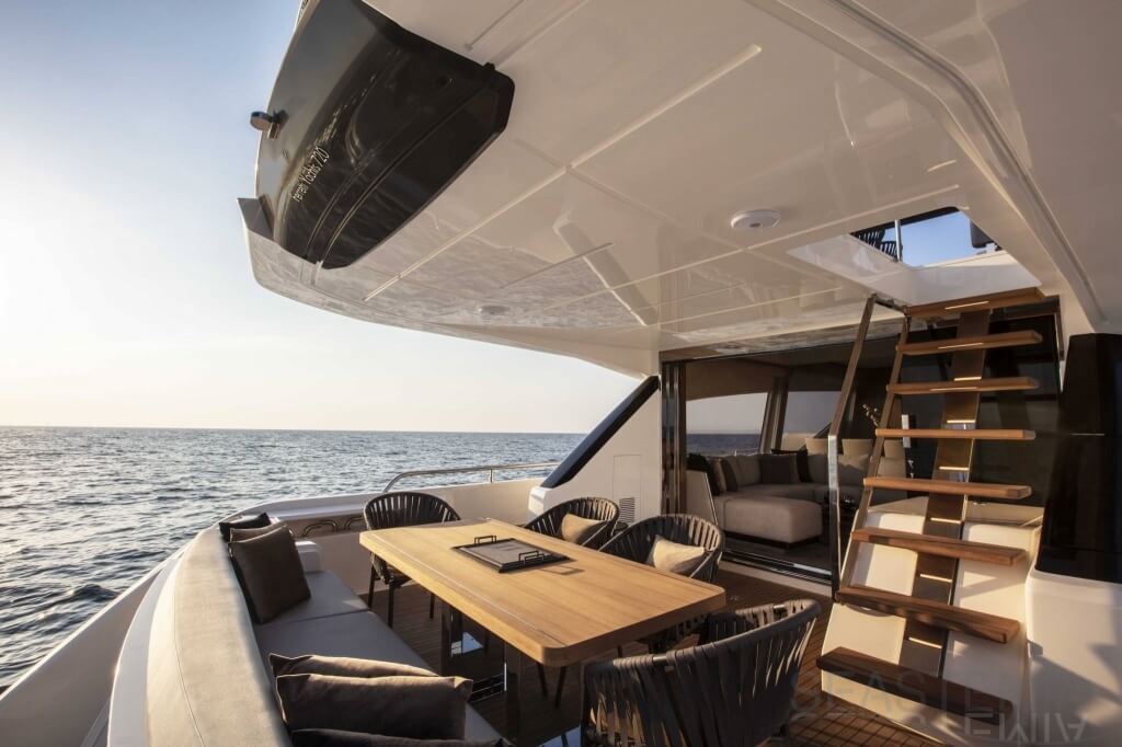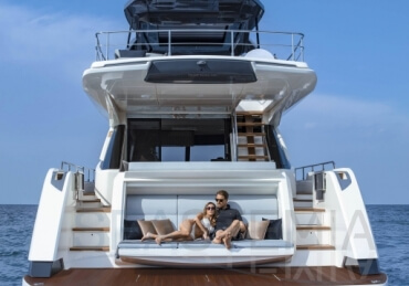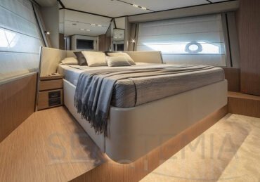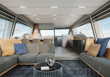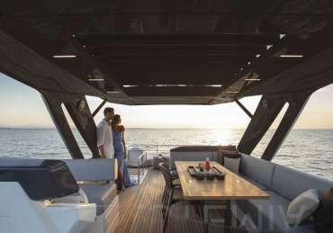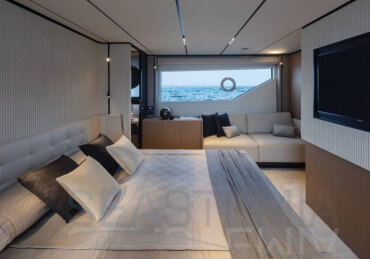 Shaped by architect Filippo Salvetti, who worked with Ferretti Group to devise the external design, this newest member of the fleet opens up a whole new way to experience the sea. The 720’s remarkably ingenious solutions elevate the concept of cruising in luxurious comfort to new heights. It’s about living the sea life in style, in your home on the waves, with all the comforts of a yacht of timeless elegance and a sensation of wellbeing like never before. The Ferretti Yachts 720 debuted at the 2019 Cannes Yachting Festival and caused an immediate stir. With her amazing spaces, unexpected headroom and abundance of areas to enjoy, she takes the cruising experience to a new level. She is the fruit of a partnership between our Product Strategy Committee and the Engineering department – the second yacht with external design by Salvetti and Ferretti Group, with interiors by our own architects and designers. The spacious master cabin echoes the play of colours and materials that grace the main deck, in a peerless private setting that’s a joy to discover. The minimalist yet detailed design provides a continual counterpoint to the walk-in wardrobe and the grand bathroom, where the smoked-glass inserts and functionality of form are in tune with current trends. The winning style of this desirable new model is based on a blend of contrasting textures. The striped ceiling, the ribbed surface of the walls, the grid-pattern headboards and the lounge furniture’s oblique-stripe motif play off one another in a profound natural harmony. The lighting design is an attribute that is unique to the 720. Horizontal LEDs integrate into the ceilings to create a soft, diffuse effect, while independent vertical spotlights with adjustable beams pick out original features with scenic flair. It all adds up to a sublime experience of genuine cruising comfort.