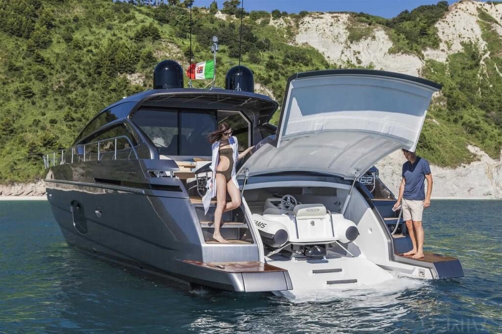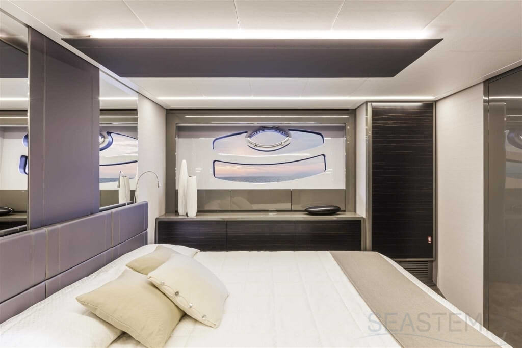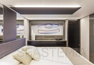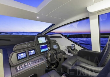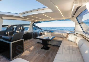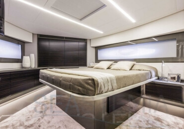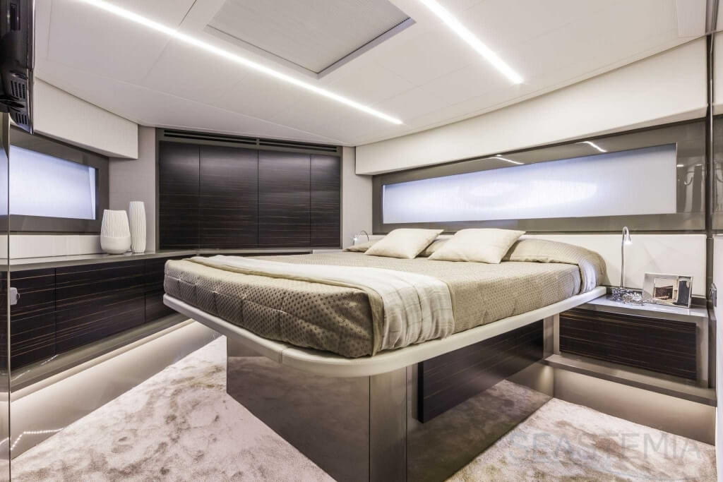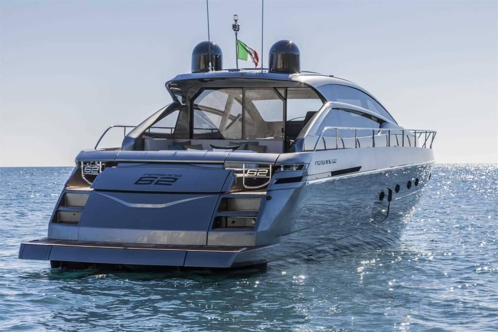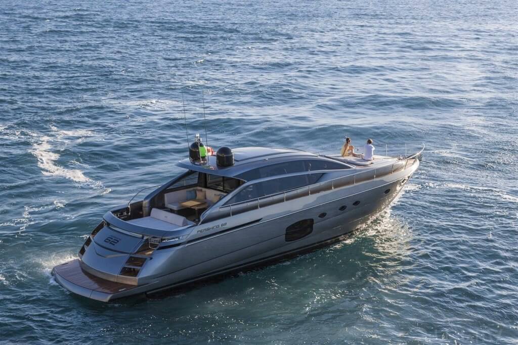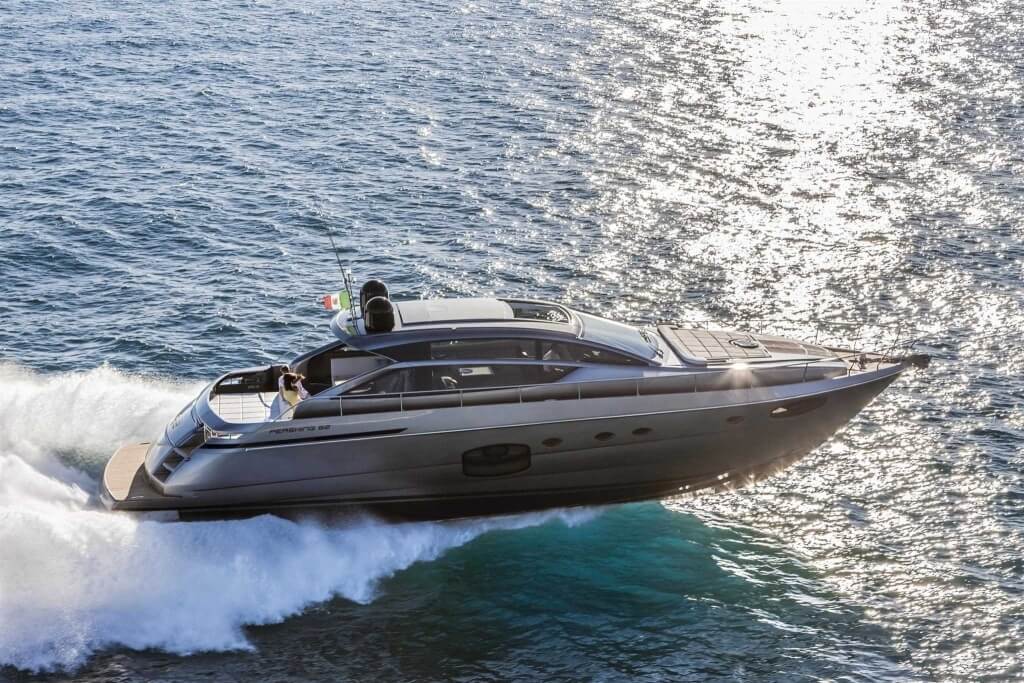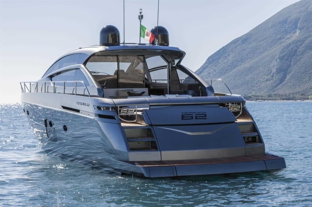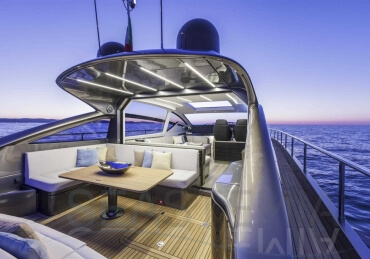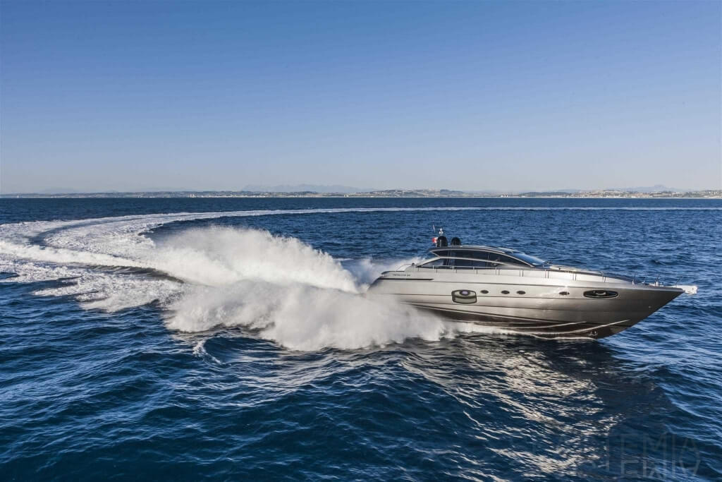 You can tell those who are unfamiliar with sailing, but love speed on the road behind the wheel of a Zonda Revolucion or a Bugatti Veyron. And if you want to explain to them how you feel cruising at 90 km/h (or better yet, in nautical terms, at over 46 knots) aboard a 33.35-ton boat, you are going to have to invite them on board. They will be elated by Pershing 62 before it even leaves the dock thanks to its streamlined and svelte looks and the hull windows that on the inside provide the lounge and master cabin with oceans of light. The master cabin is extremely luxurious and high-tech, as is the forward VIP cabin, which is also generously lit by a double window with porthole. Comfort, technology and speed merge together with the fun you will have cutting the waves as you easily reach the speed of 46.5 knots. And to get an idea of its handling, you can change course at 42 knots without ending up in a 180° spin while sitting on your comfortable and snug Poltrona Frau helmseat. The Pershing 62 is available in two versions: with three cabins and three bathrooms with separate shower, or with two cabins (master and VIP) with the guest cabin replaced by a lower deck dinette.