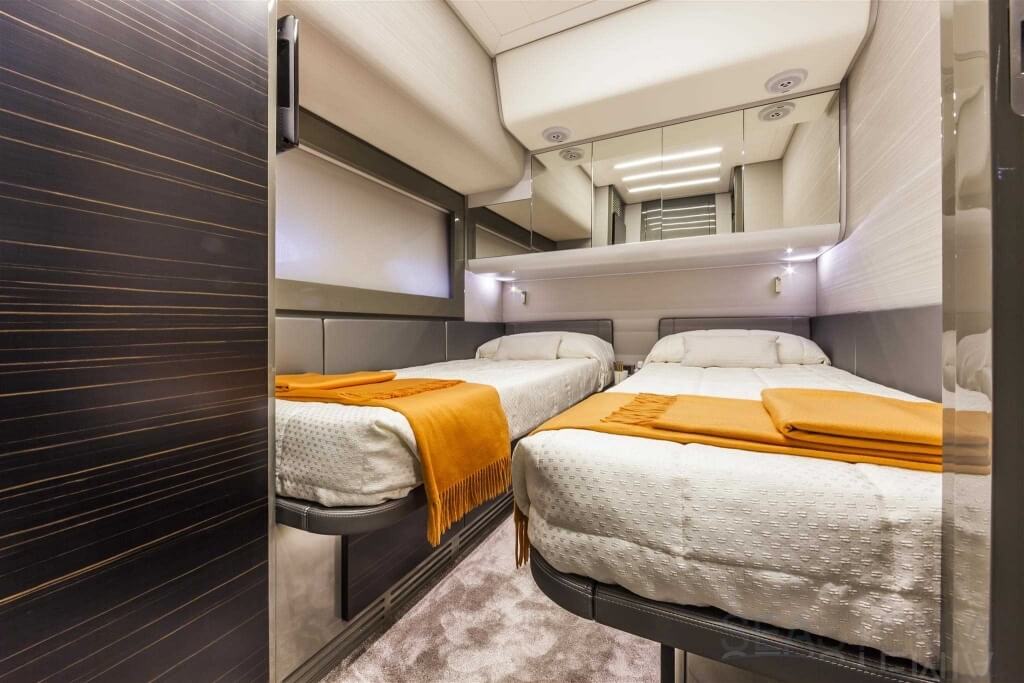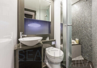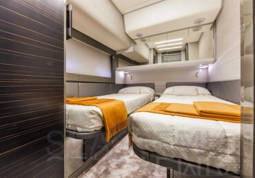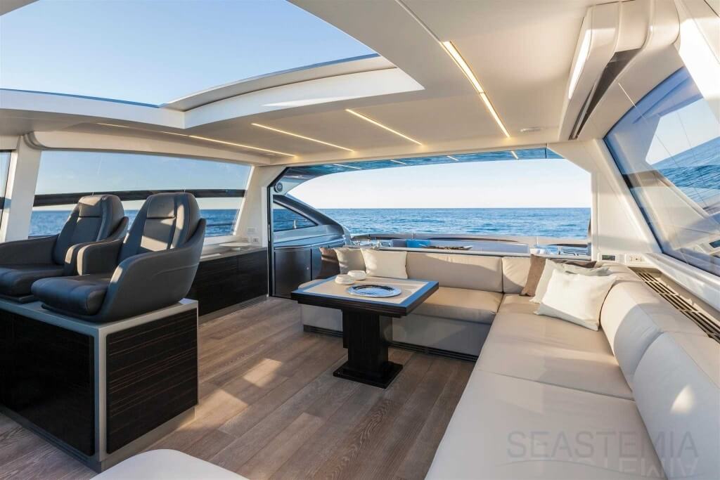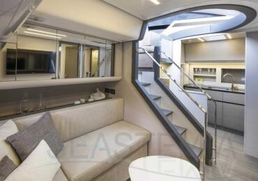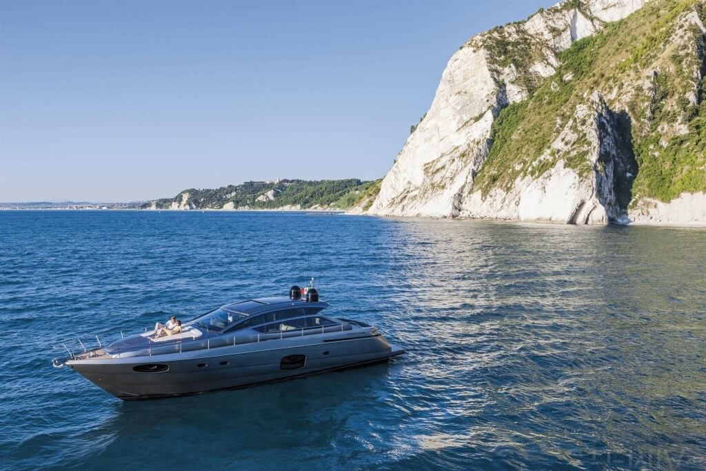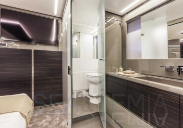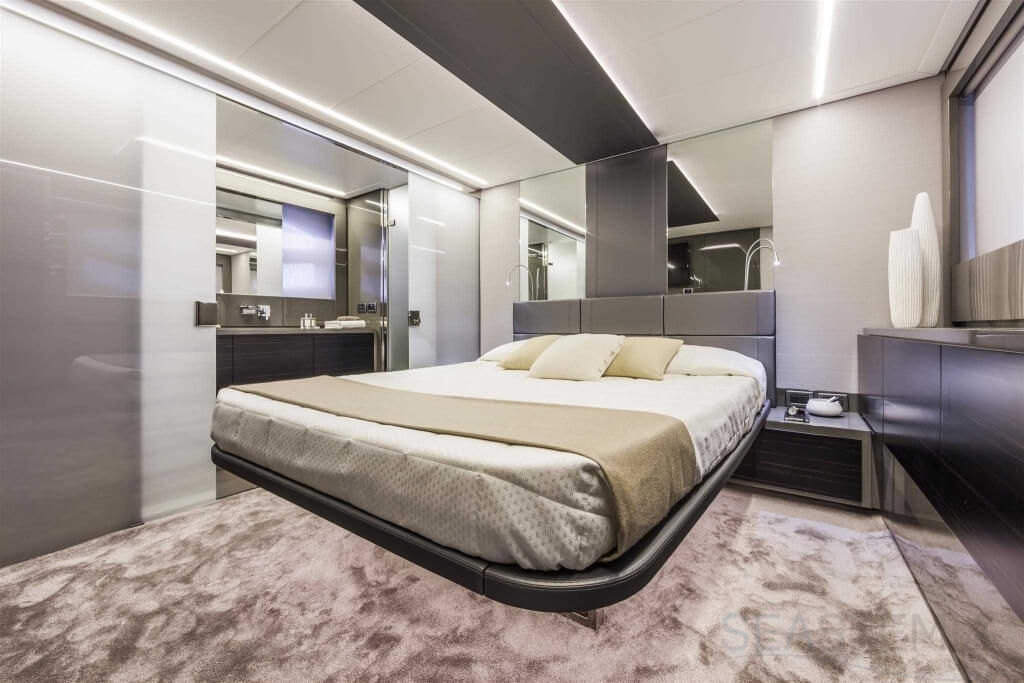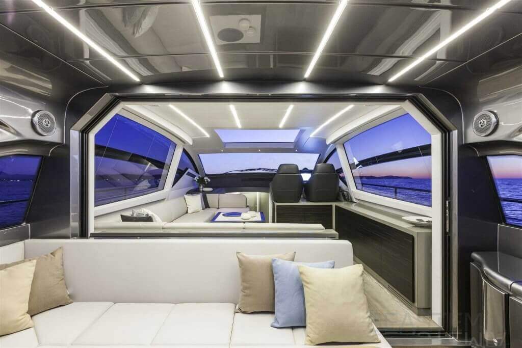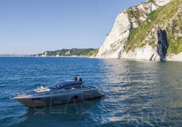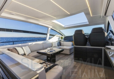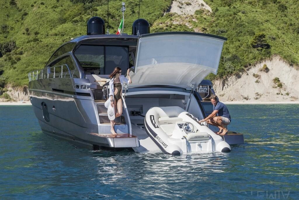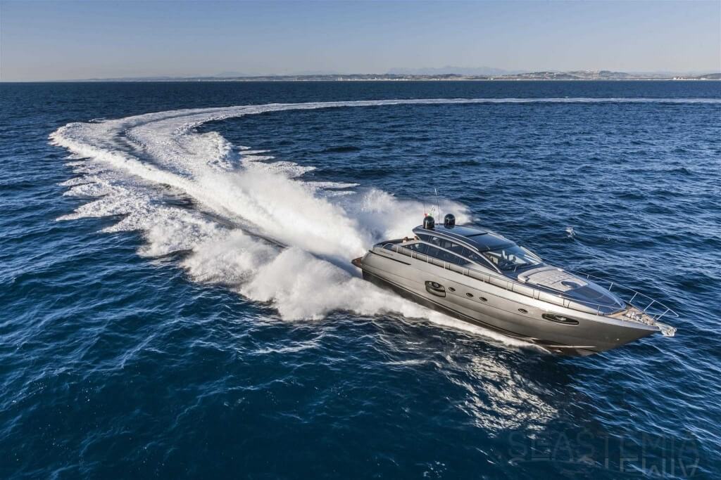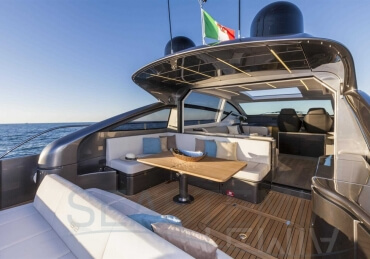 You can tell those who are unfamiliar with sailing, but love speed on the road behind the wheel of a Zonda Revolucion or a Bugatti Veyron. And if you want to explain to them how you feel cruising at 90 km/h (or better yet, in nautical terms, at over 46 knots) aboard a 33.35-ton boat, you are going to have to invite them on board. They will be elated by Pershing 62 before it even leaves the dock thanks to its streamlined and svelte looks and the hull windows that on the inside provide the lounge and master cabin with oceans of light. The master cabin is extremely luxurious and high-tech, as is the forward VIP cabin, which is also generously lit by a double window with porthole. Comfort, technology and speed merge together with the fun you will have cutting the waves as you easily reach the speed of 46.5 knots. And to get an idea of its handling, you can change course at 42 knots without ending up in a 180° spin while sitting on your comfortable and snug Poltrona Frau helmseat. The Pershing 62 is available in two versions: with three cabins and three bathrooms with separate shower, or with two cabins (master and VIP) with the guest cabin replaced by a lower deck dinette.